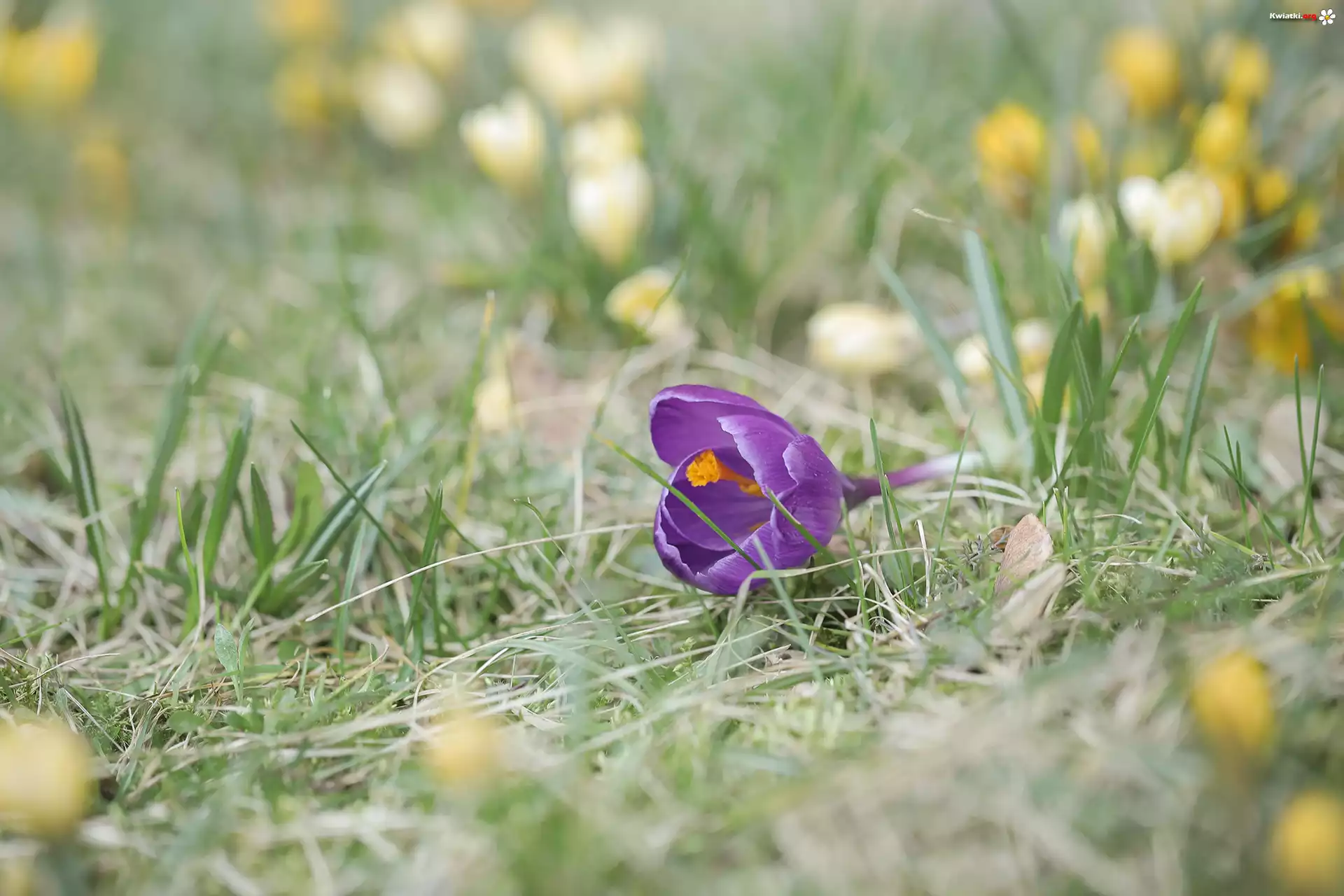 Kwiat Fioletowy, Pochylony, Krokus, Trawa