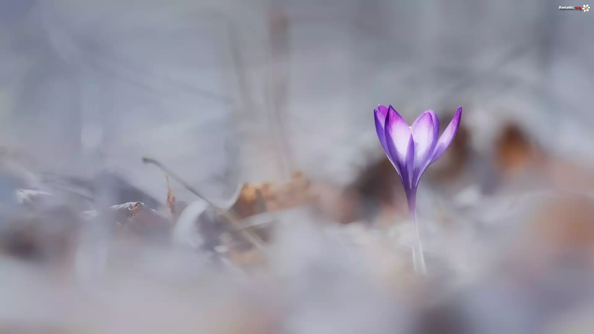 Fioletowy, Kwiatek, Krokus, Rozmyte tło - Zdjęcia