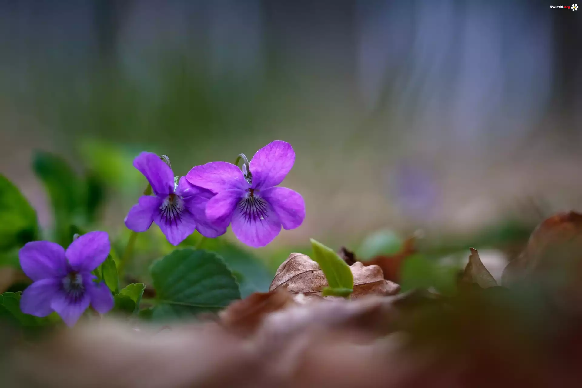 Fiołki, Kwiaty, Liście, Ściółka - Zdjęcia