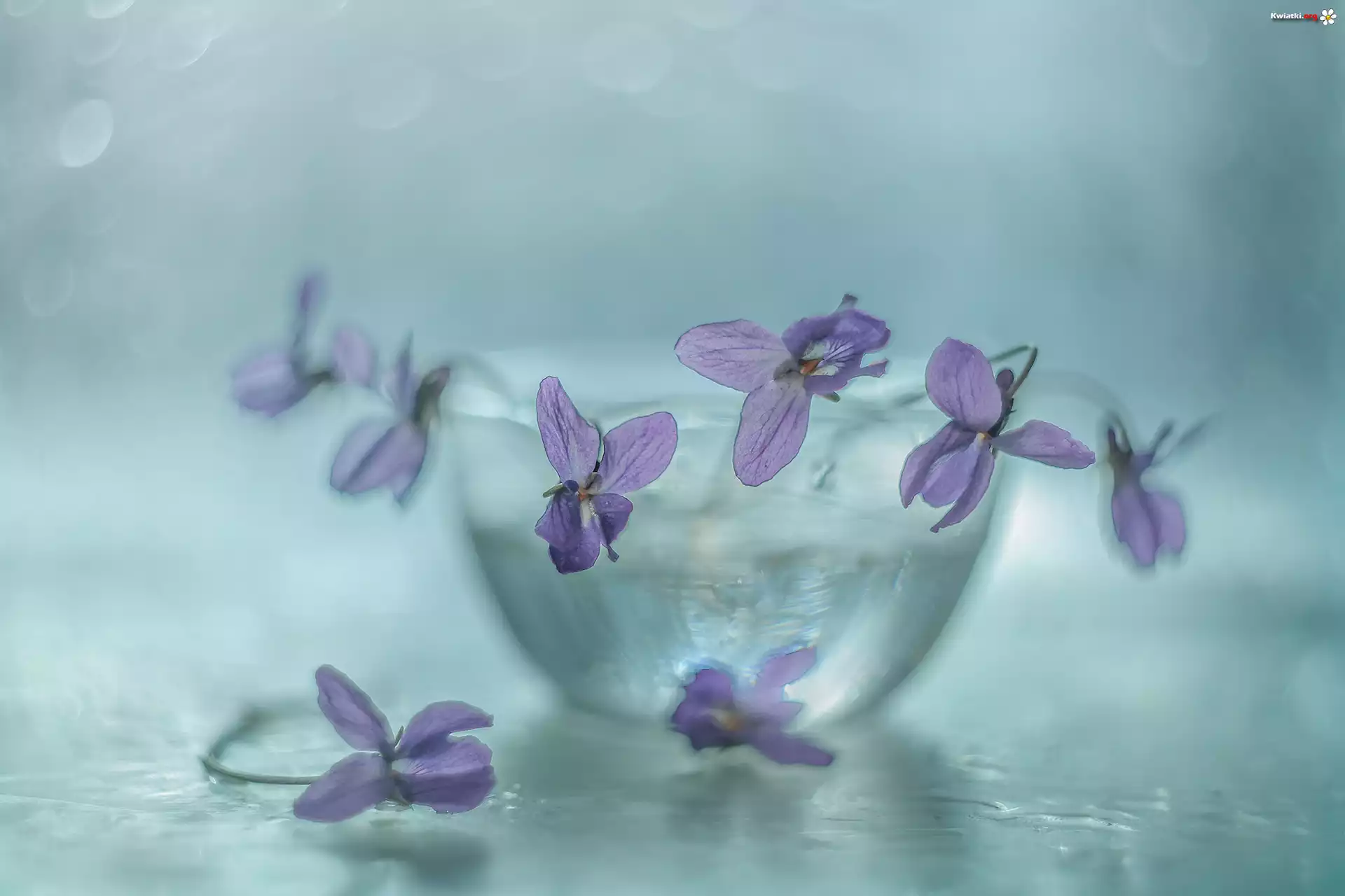 Kwiat Fiołki wonne, Fioletowe, Kwiaty, Szklana, Miseczka