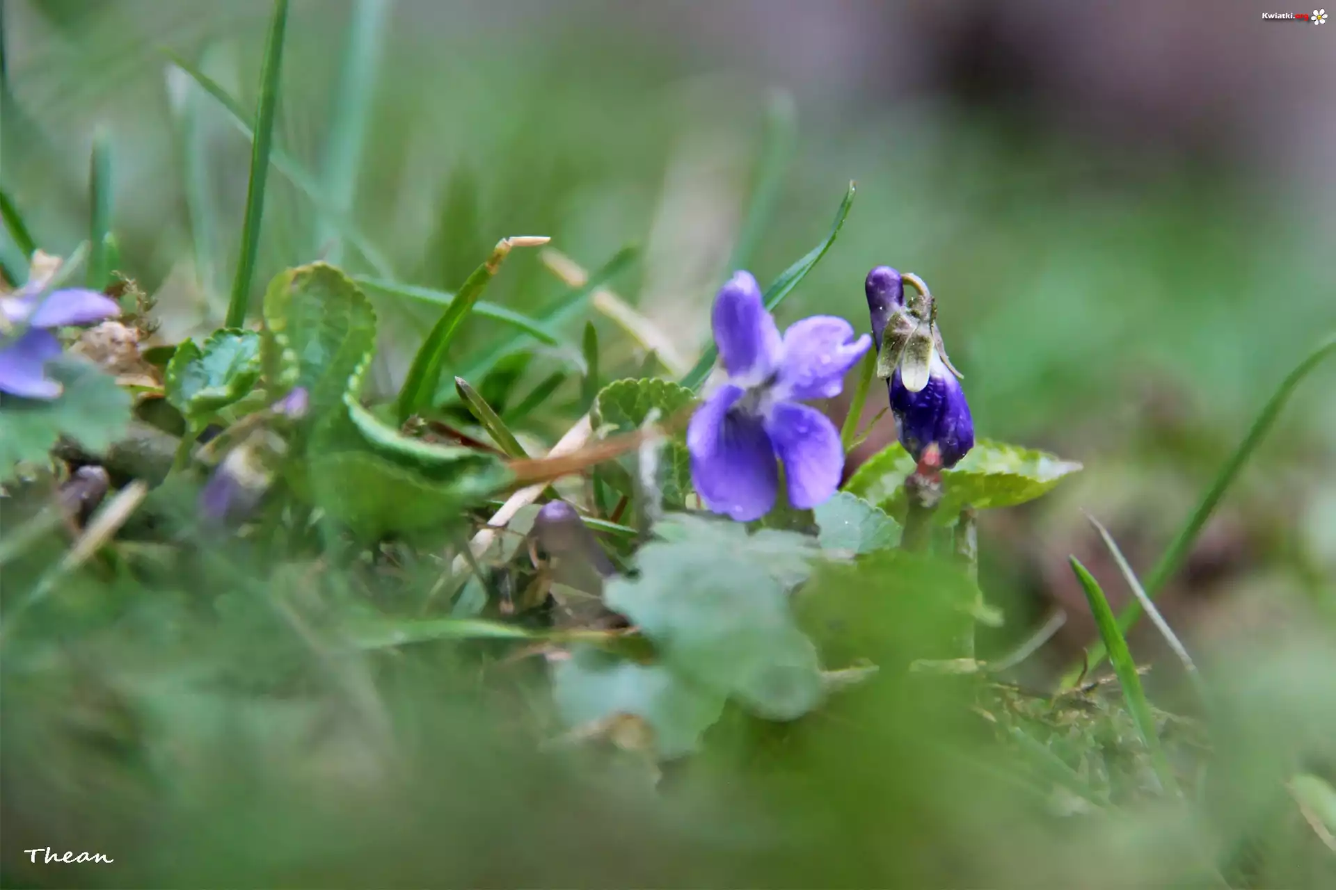 Fiołki, Trawa - Zdjęcia