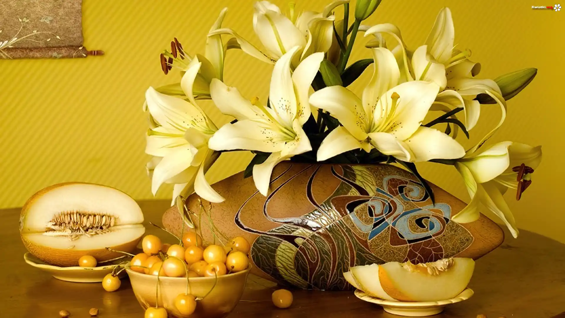 Żółte, Lilie, Piękny, Flakon, Melon - Zdjęcia