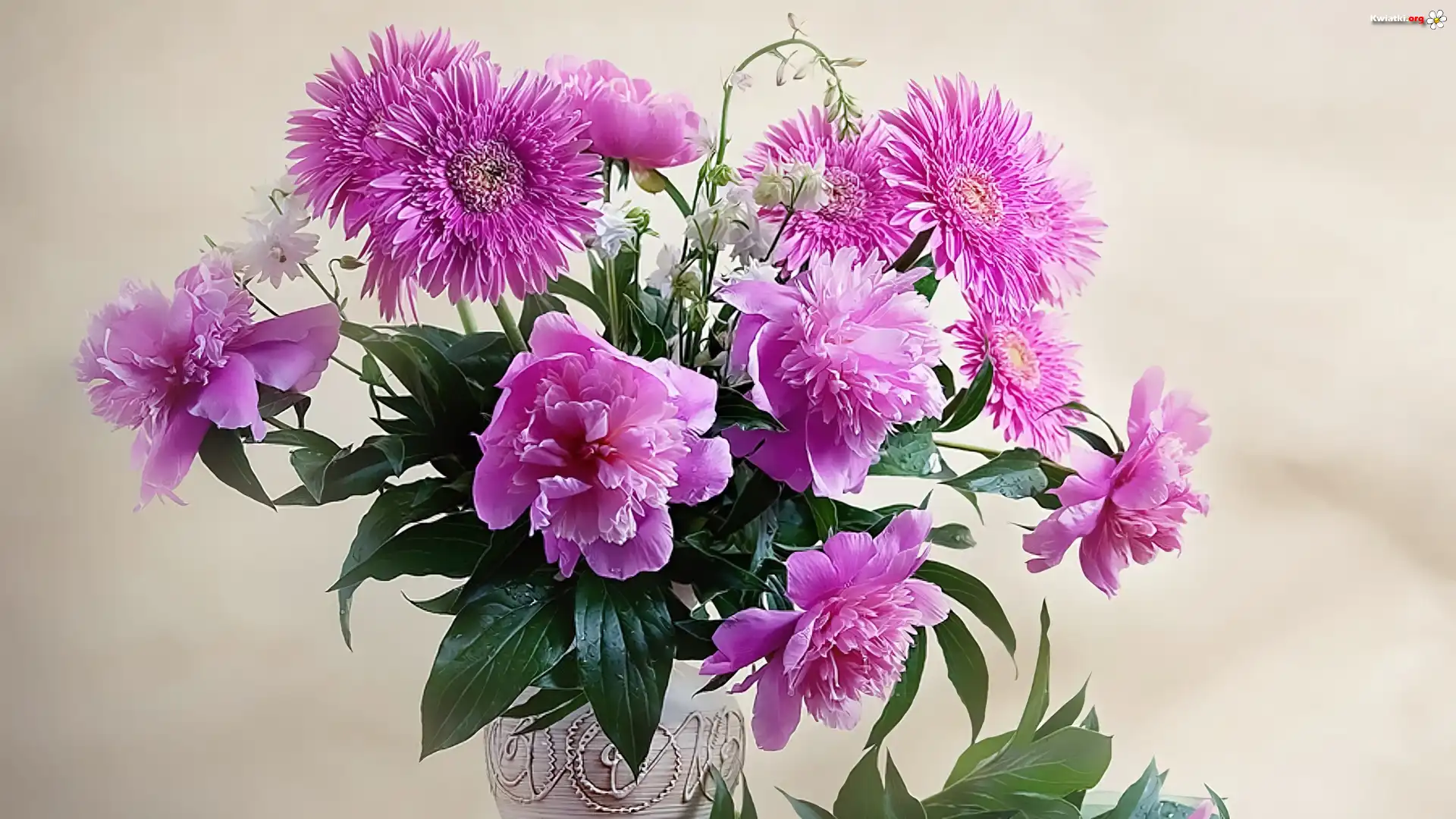 Kwiat Flakon, Bukiet, Piwonii, Astrów