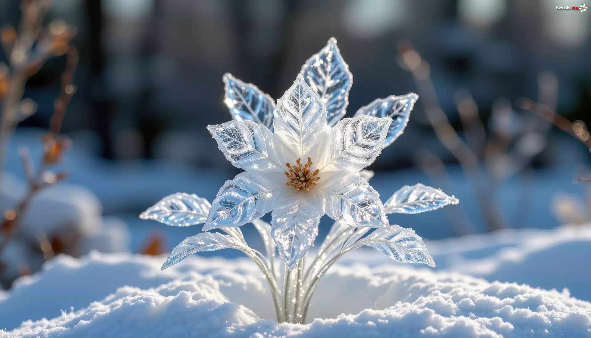 Kwiat Oszroniony, Kwiat, Śnieg, Gałązki