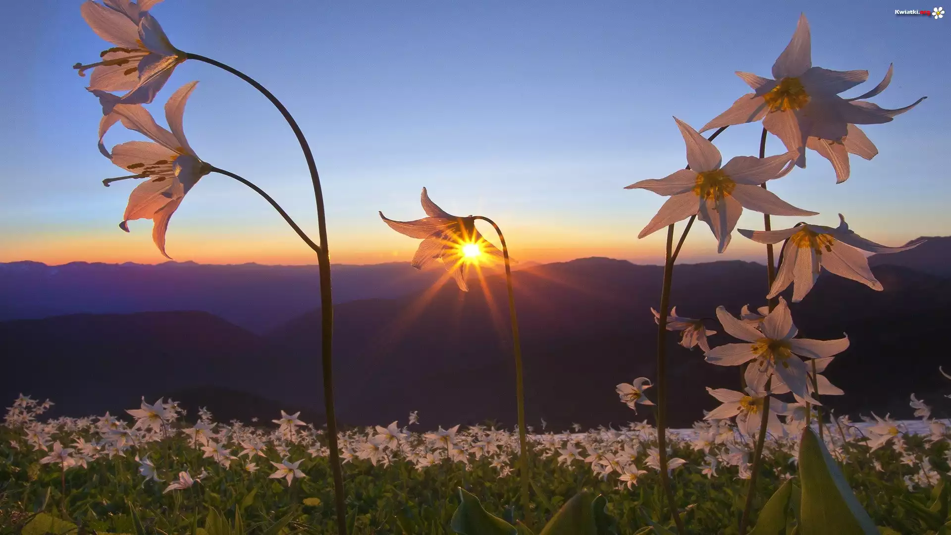 Góry, Promienie, Słońca, Kwiaty - Zdjęcia
