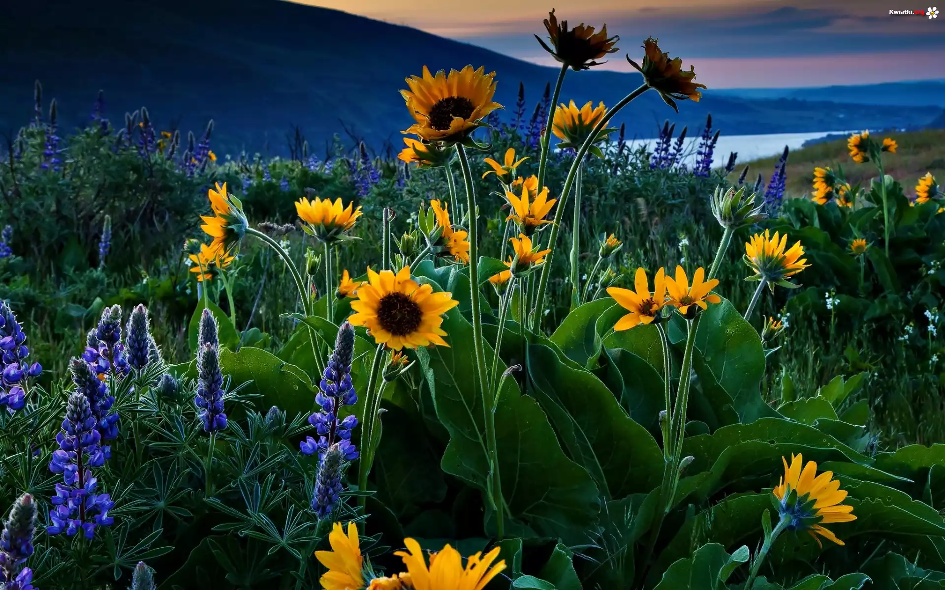 Kwiat Góry, Kwiaty, Słoneczniki, Łubin