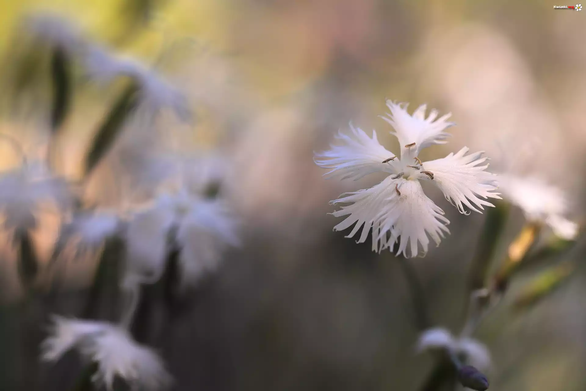 Kwiat Biały, Goździk, Kwiat, Rozmyte, Tło