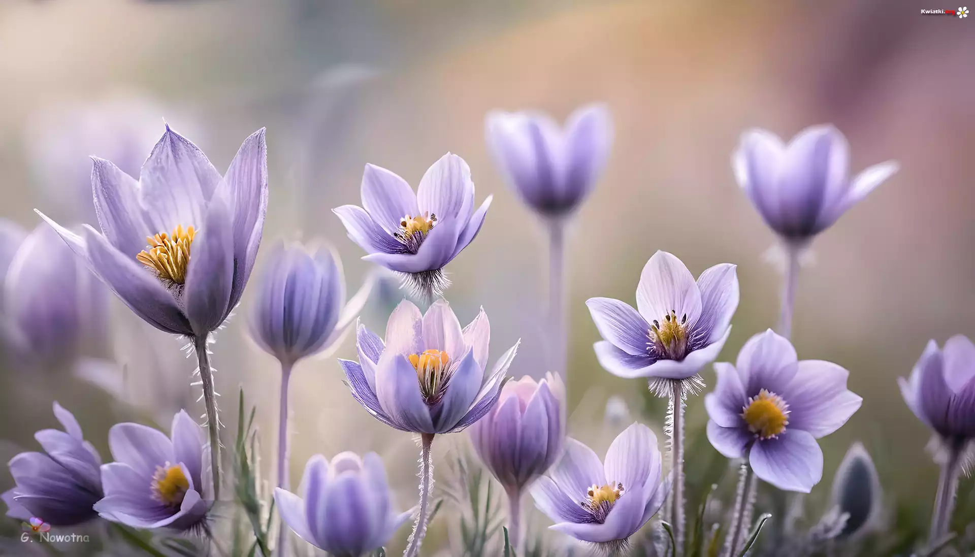 Fioletowe, Sasanki, Kwiaty, Grafika - Zdjęcia