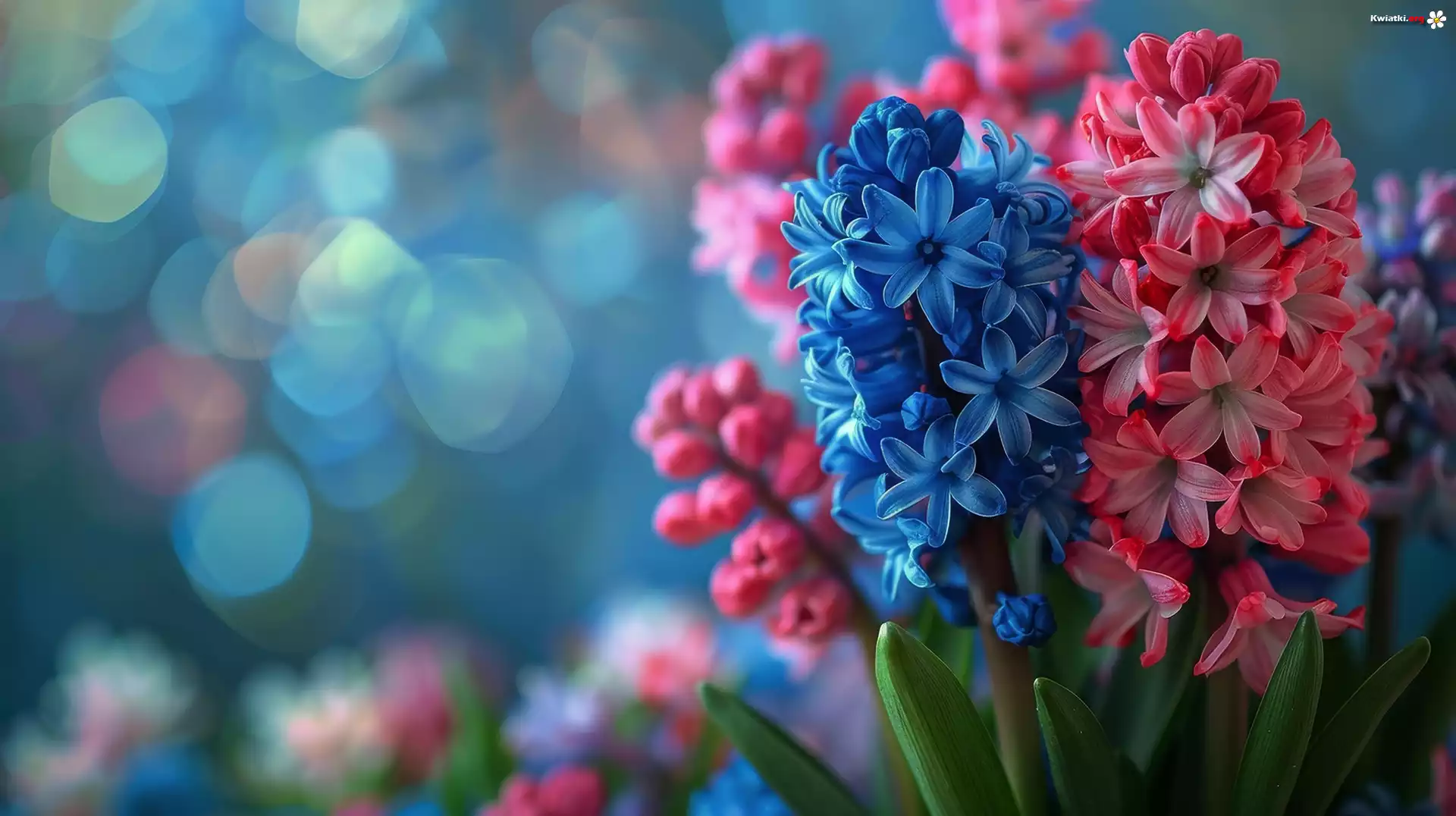 Hiacynty, Kolorowe, Kwiaty, Grafika - Zdjęcia