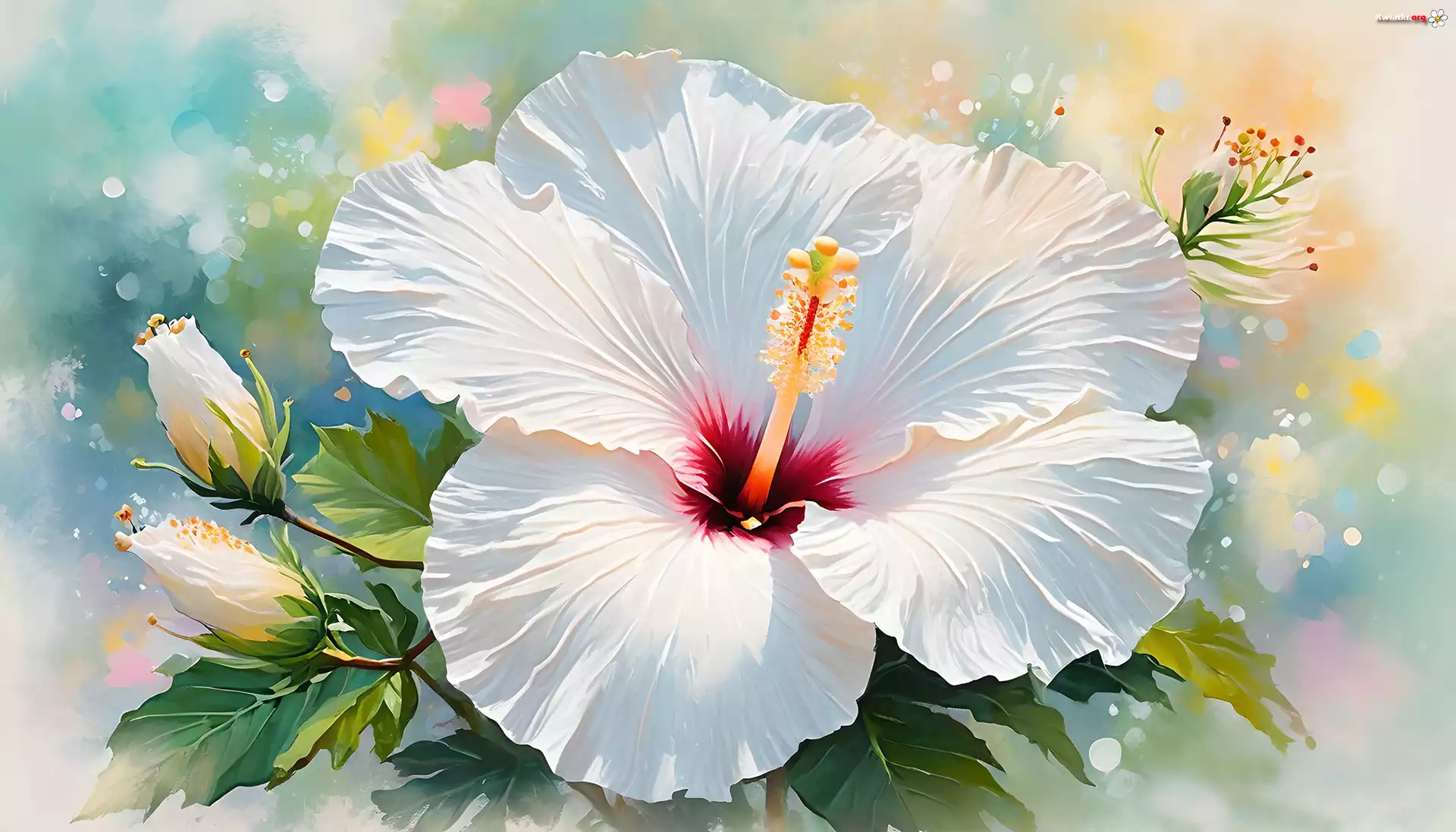 Hibiskus, Biały, Kwiat, Grafika - Zdjęcia