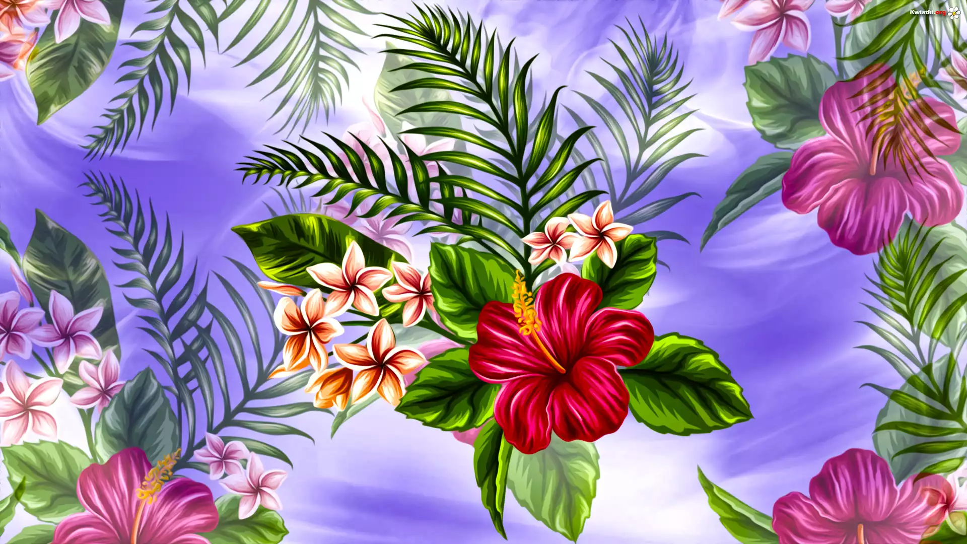 Grafika, Kwiaty, Plumeria, Hibiskus, Listki - Zdjęcia