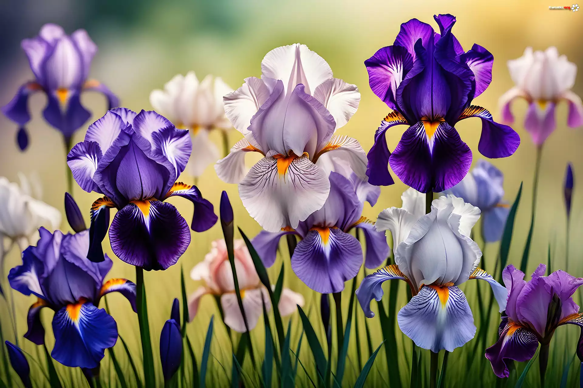 Irysy, Kwiaty, Kolorowe, Grafika - Zdjęcia