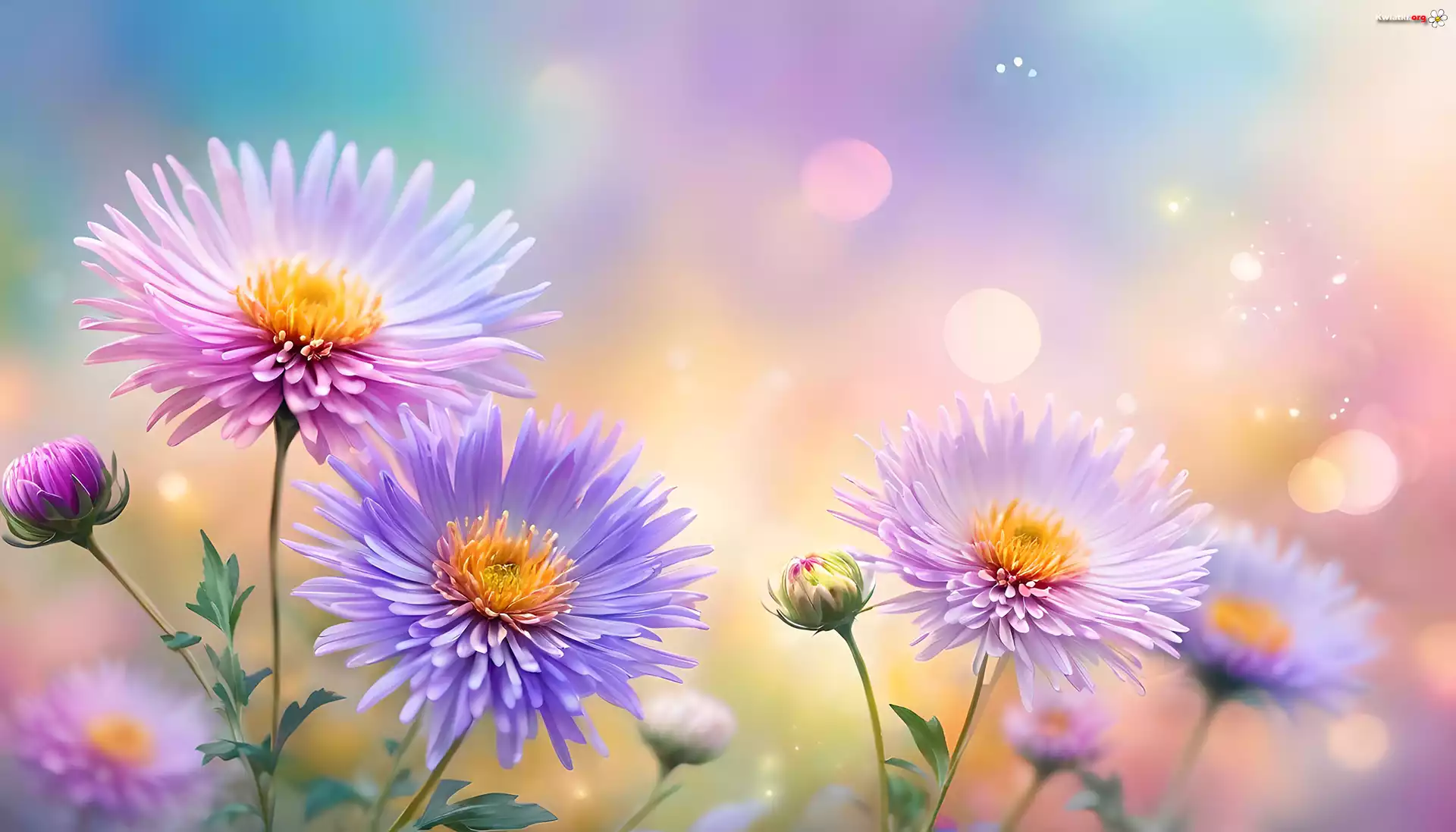 Kolorowe, Astry, Kwiaty, Grafika - Zdjęcia