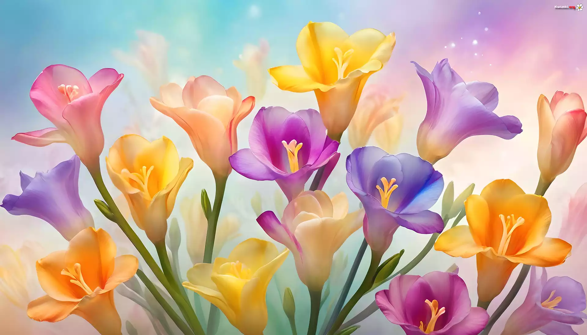 Kolorowe, Frezje, Kwiaty, Grafika - Zdjęcia