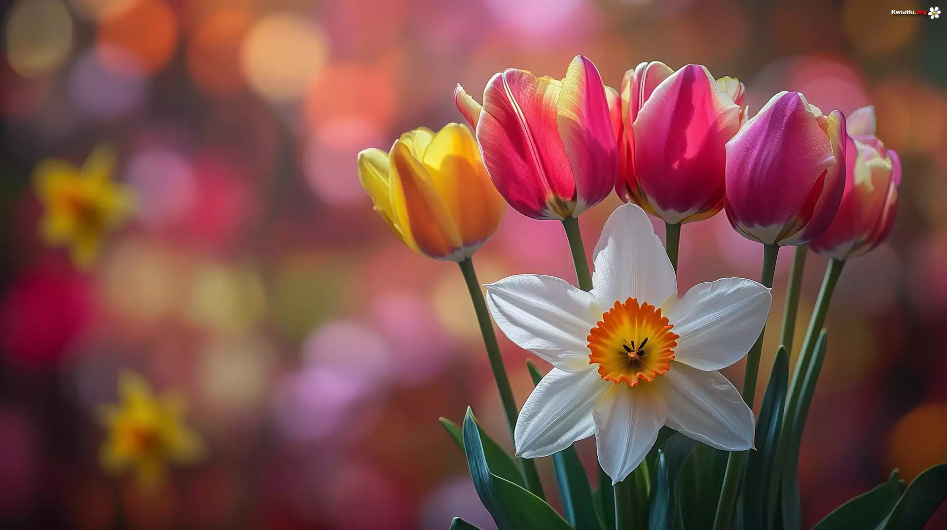 Kwiaty, Tulipany, Narcyz, Grafika - Zdjęcia