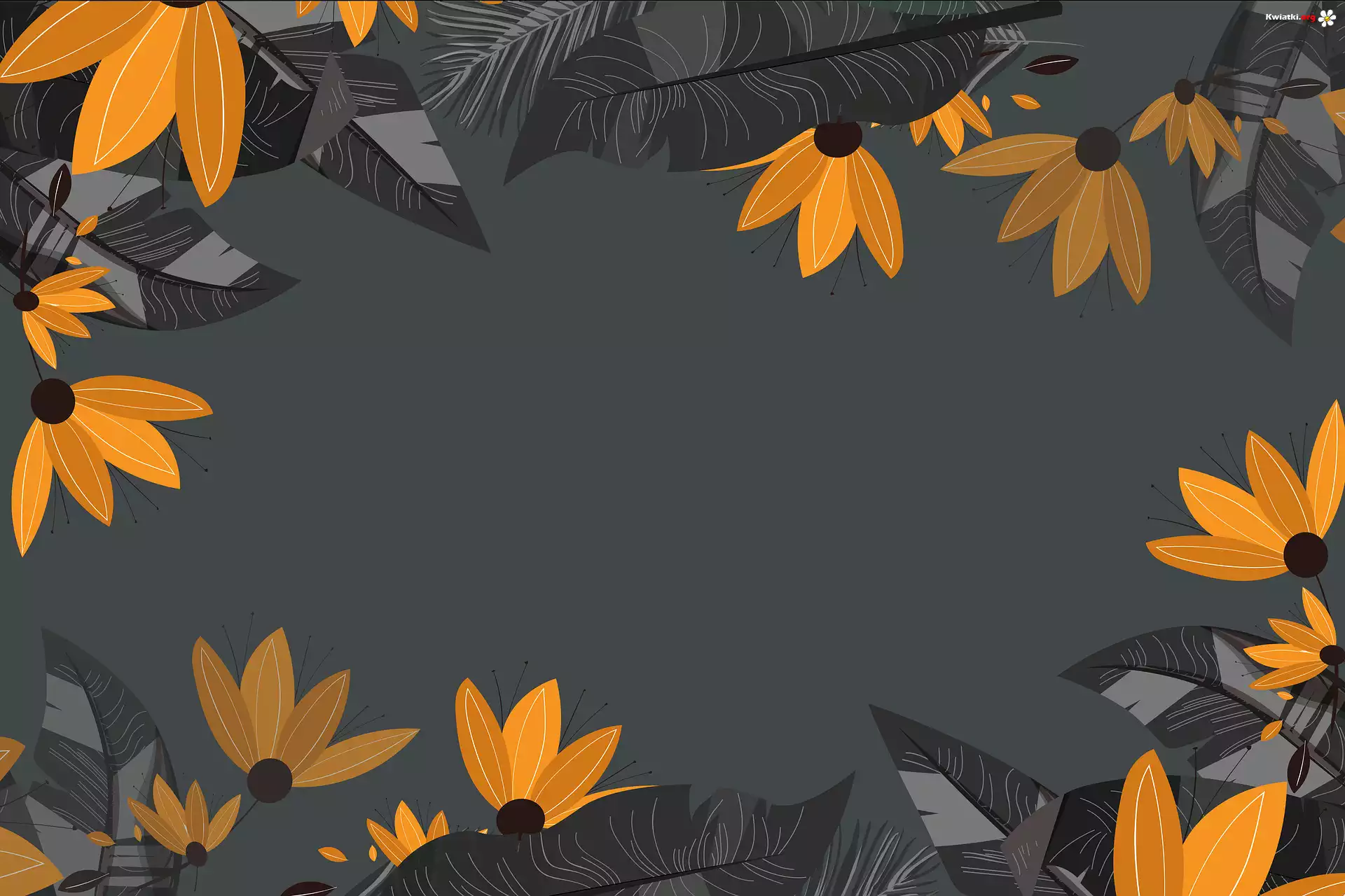 Grafika, Pomarańczowe, Kwiaty, Liście - Zdjęcia