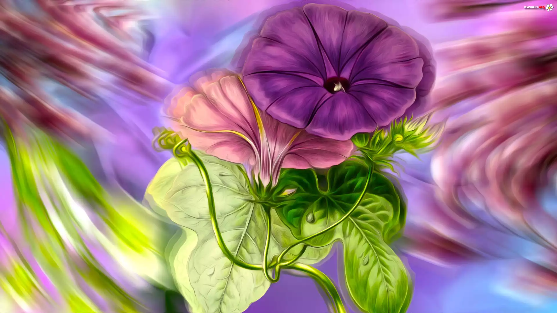 Grafika, Kwiaty, Listki, Petunie - Zdjęcia