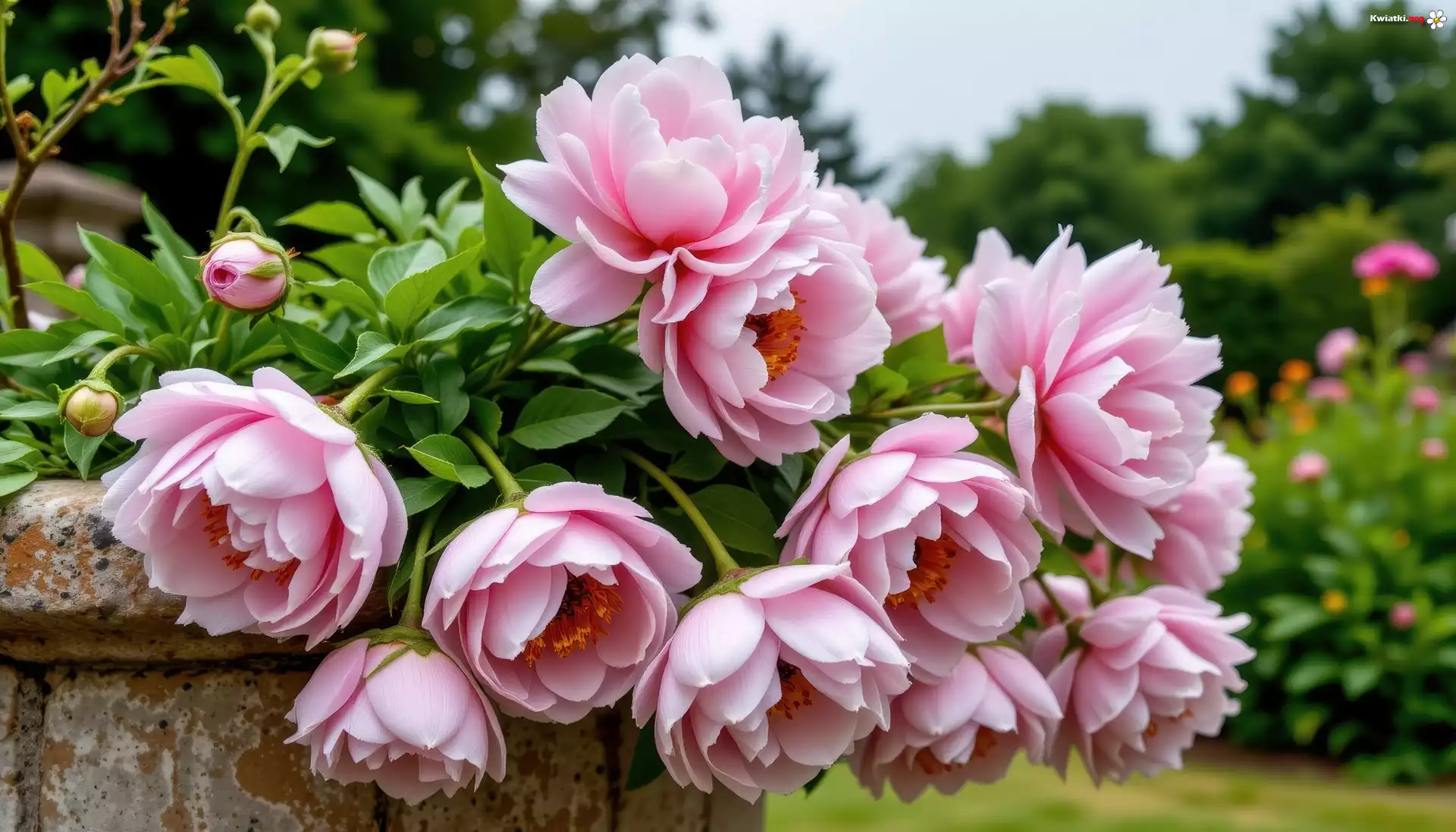 Piwonie, Kwiaty, Ogród, Grafika - Zdjęcia