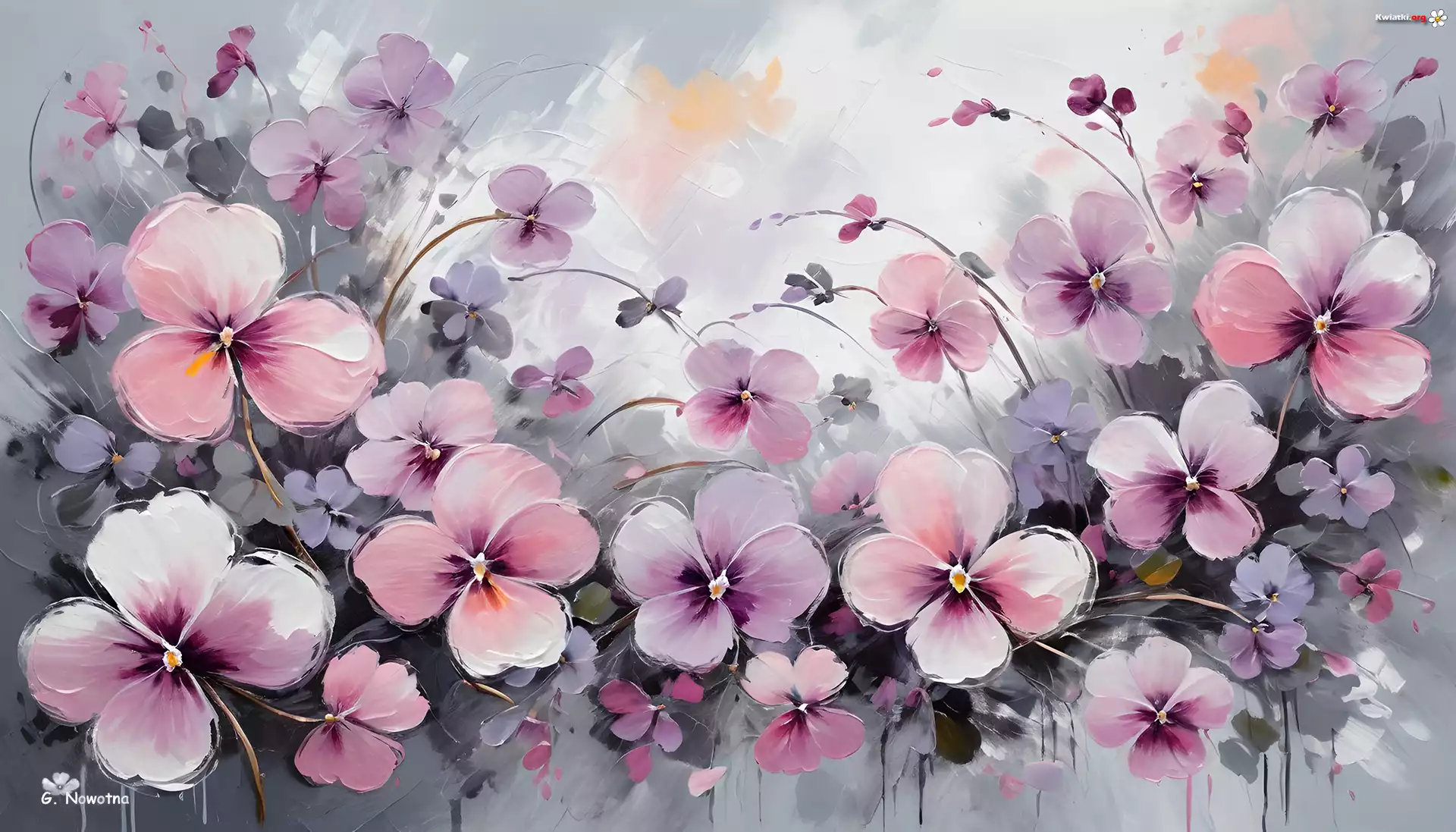 Różowe, Bratki, Kwiaty, Grafika - Zdjęcia