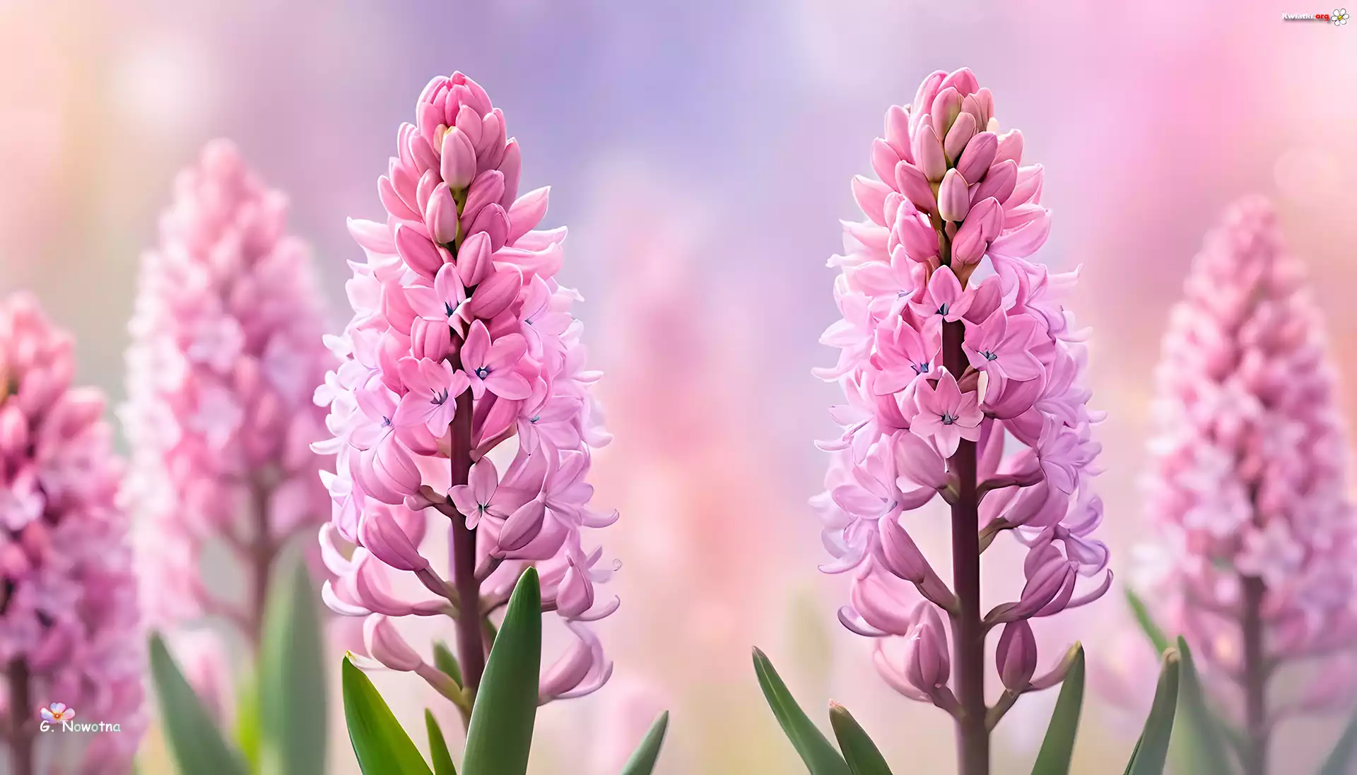 Różowe, Hiacynty, Kwiaty, Grafika - Zdjęcia