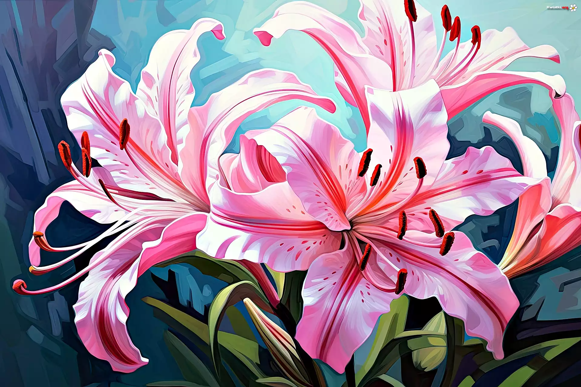 Różowe, Lilie, Kwiaty, Grafika - Zdjęcia