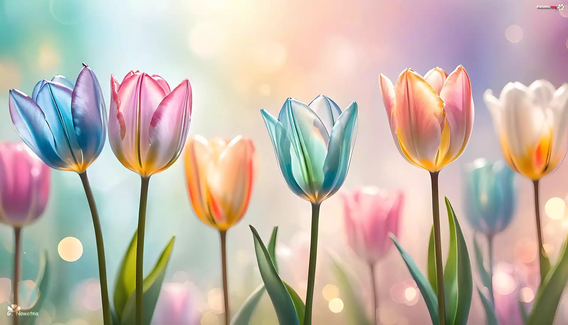 Kwiat Rozświetlone, Kolorowe, Tulipany, Grafika