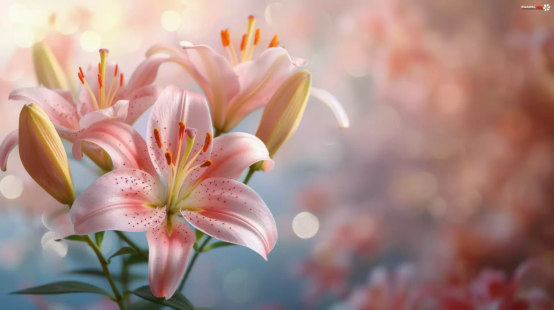 Kwiat Lilie, Różowe, Kwiaty, Grafika, Rozmyte, Tło