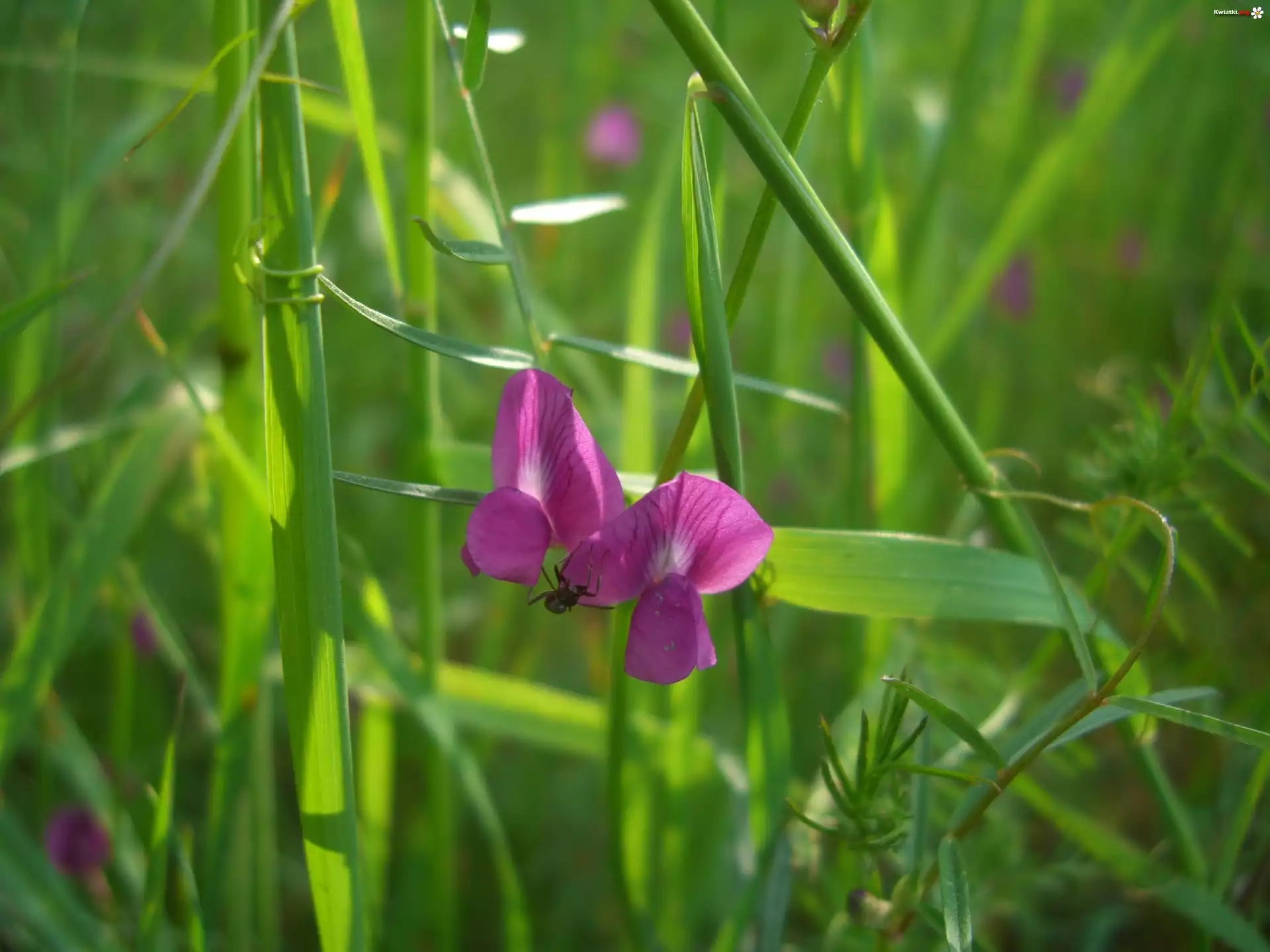 Wyka, Groch, Siewny, Kwiatki, Fioletowe, Trawy, Pajączek - Zdjęcia