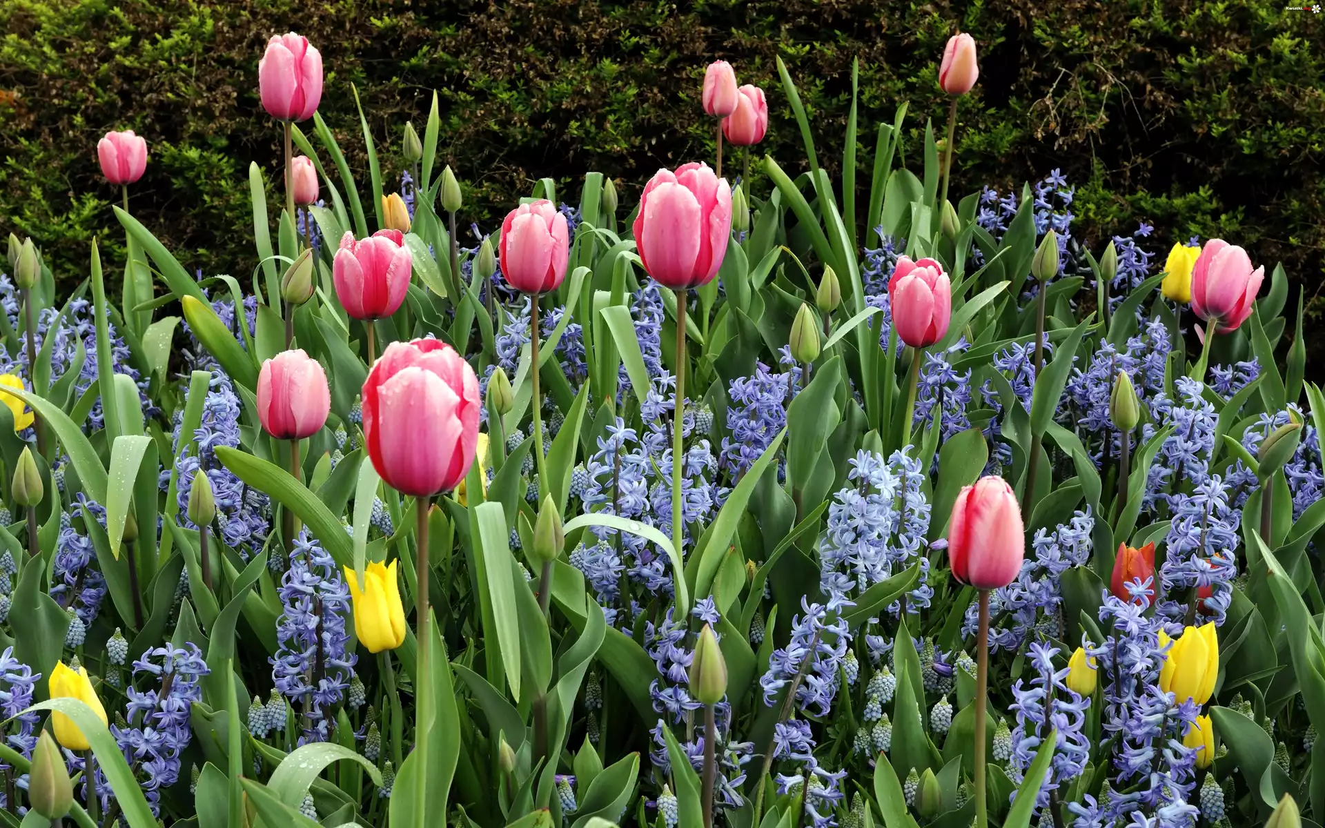 Tulipany, Hiacynty, Ogród - Zdjęcia