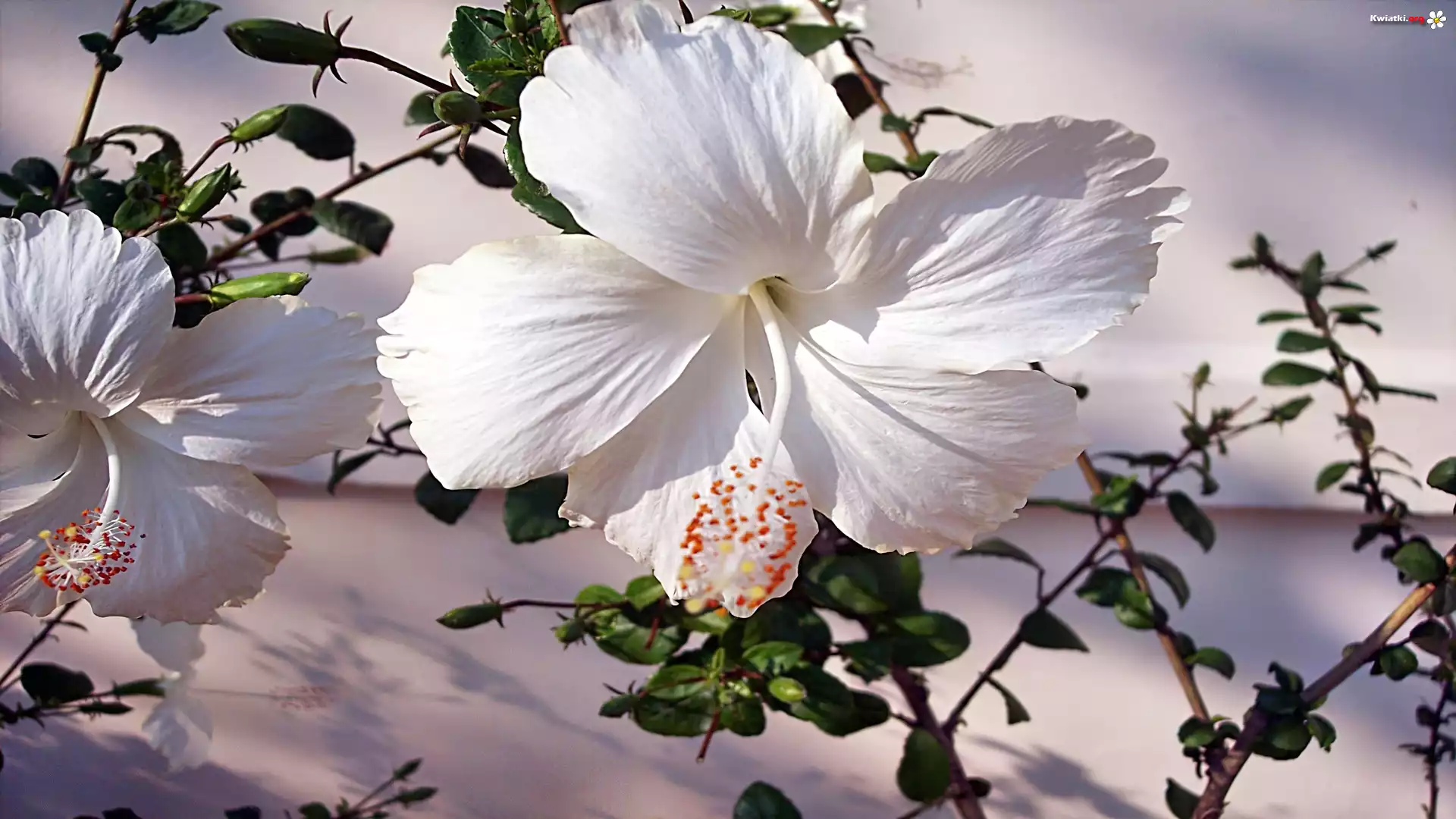 Biały, Hibiskus, Gałązki - Zdjęcia