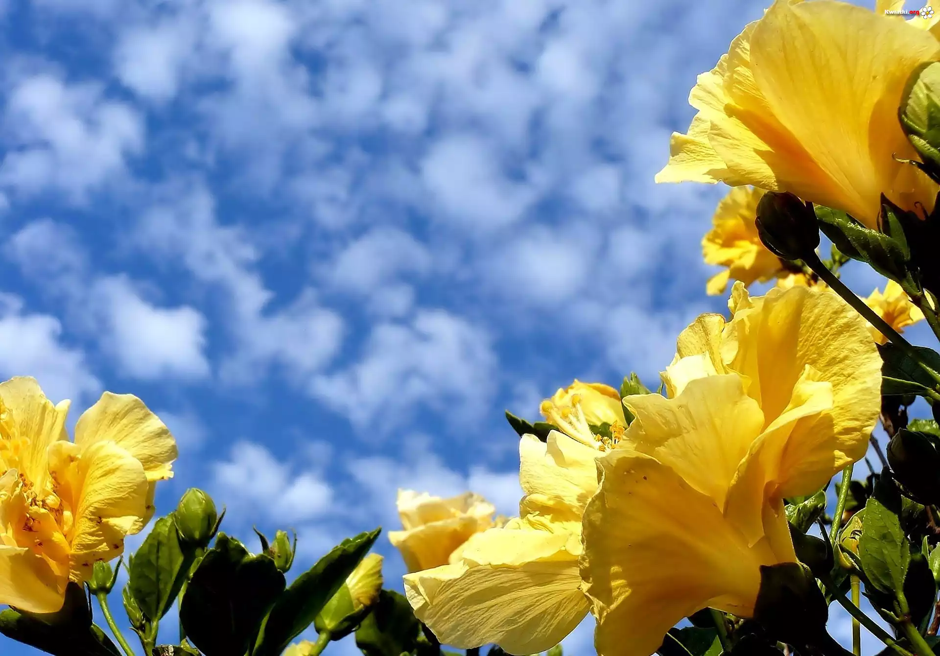 Żółty, Hibiskus, Niebo - Zdjęcia