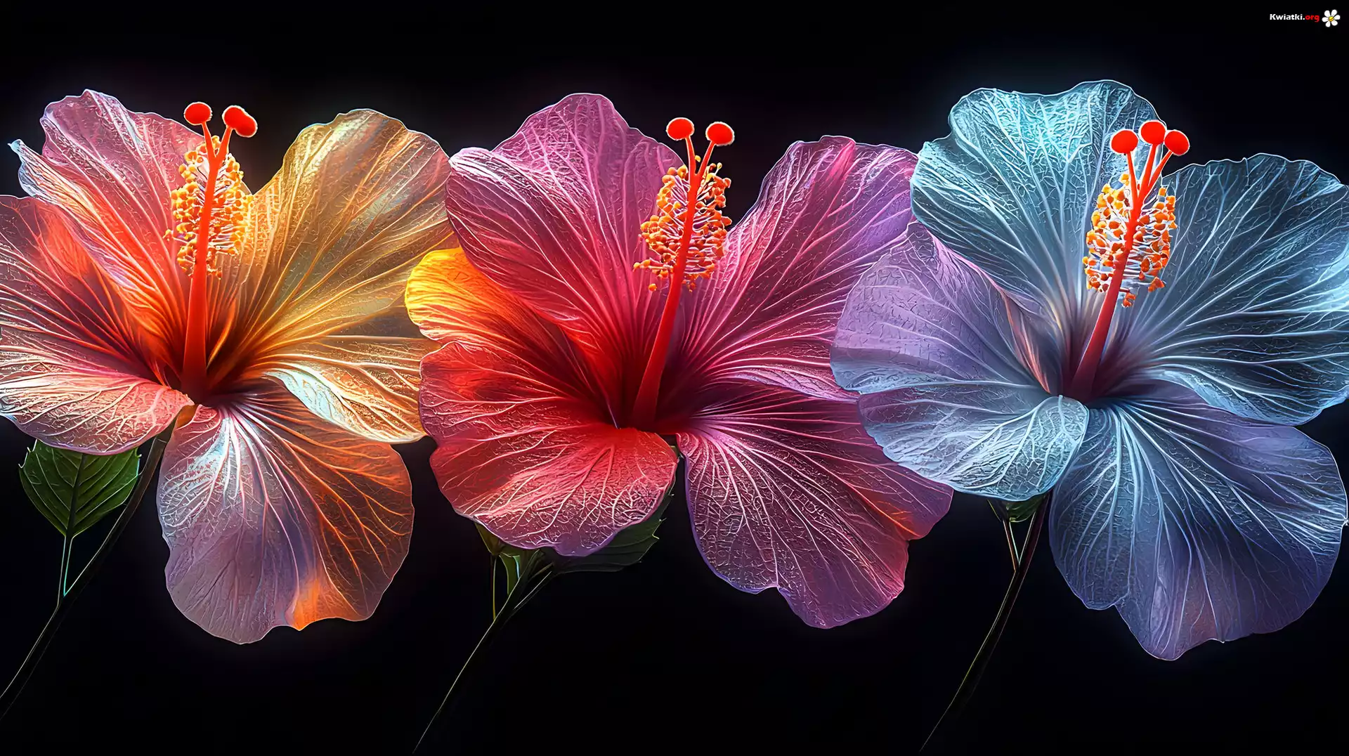 Kwiaty, Trzy, Kolorowe, Hibiskusy - Zdjęcia