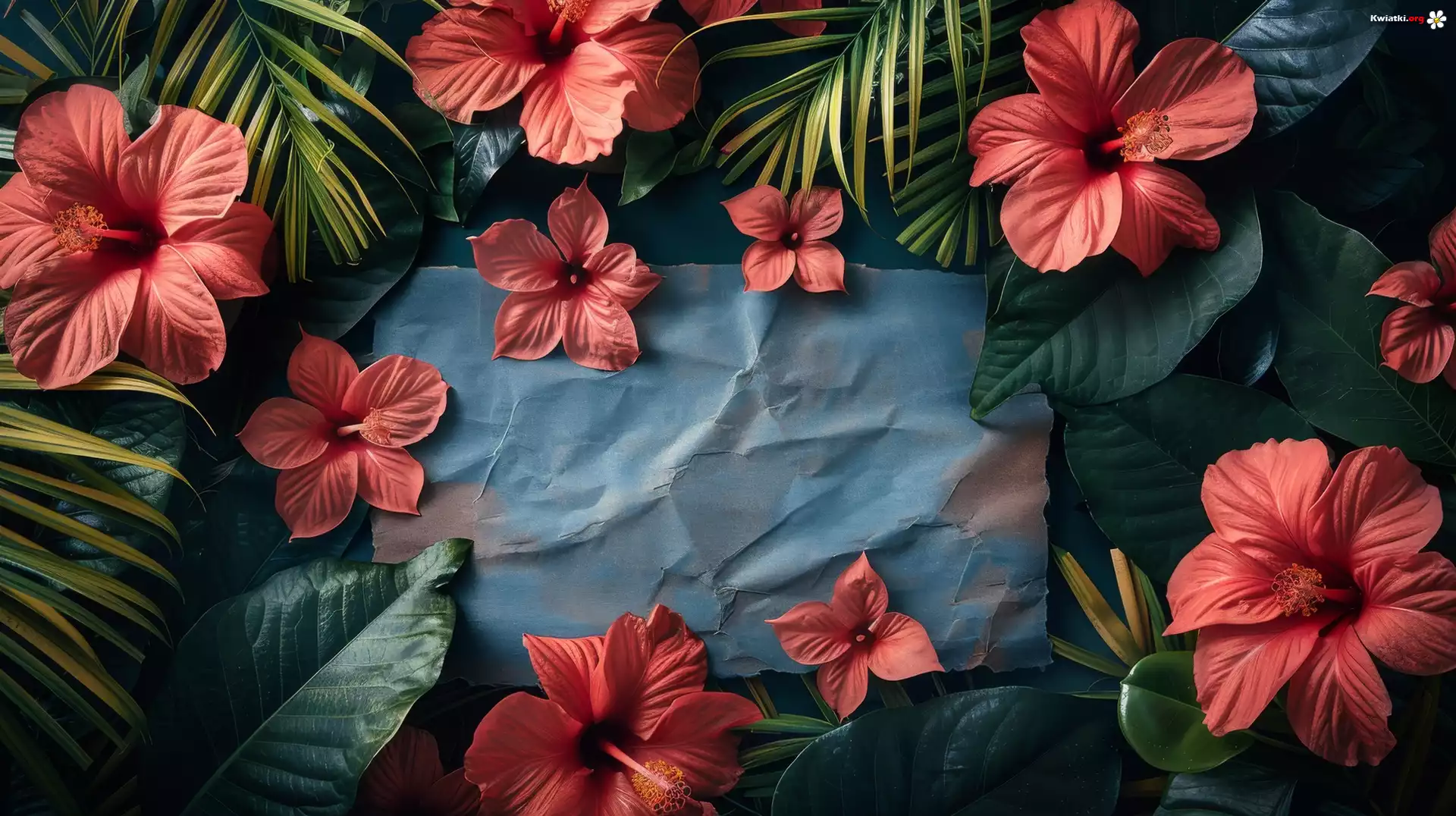 Kwiaty, Hibiskusy, Liście, Papier, Kartka - Zdjęcia