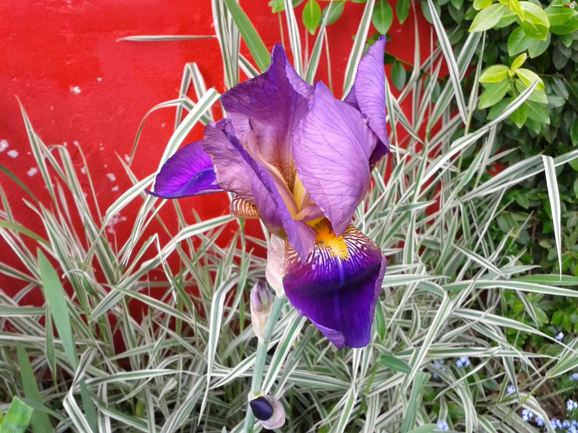 Fioletowy, Kosaciec, Żyłkowany Irys, Niebieski, Żółty, Czerwona Ściana