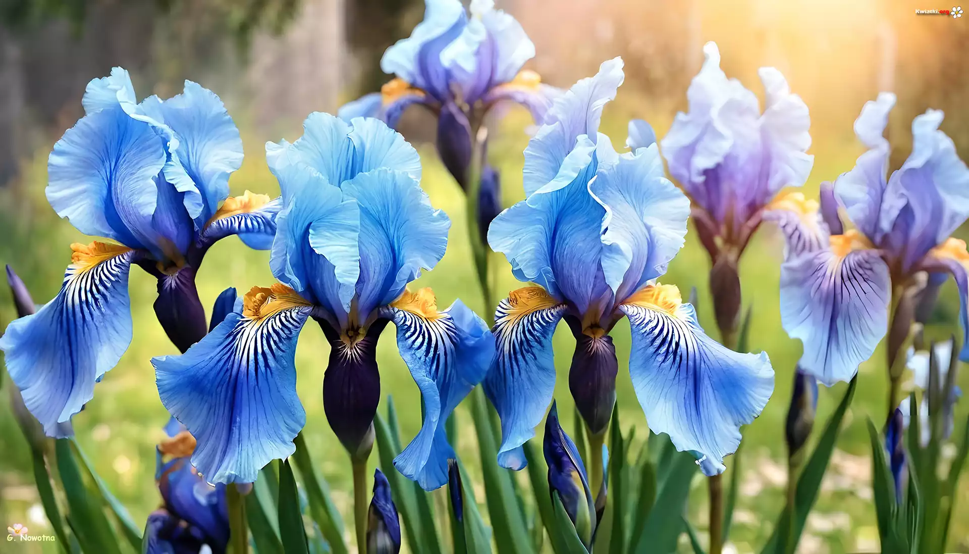 Niebieskie, Irysy, Kwiaty, Grafika AI - Zdjęcia