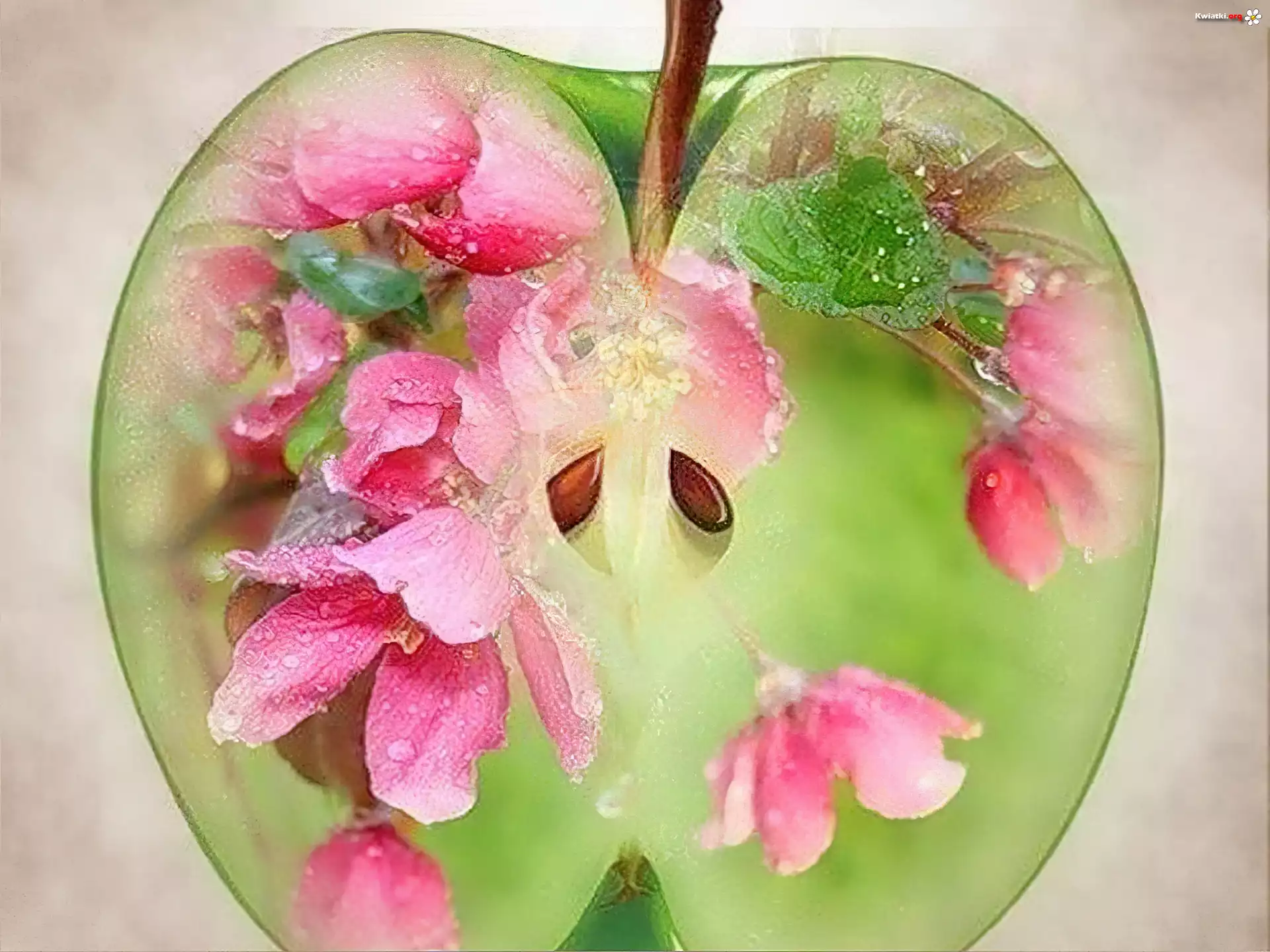 Połowa, Jabłka, Kwiaty - Zdjęcia