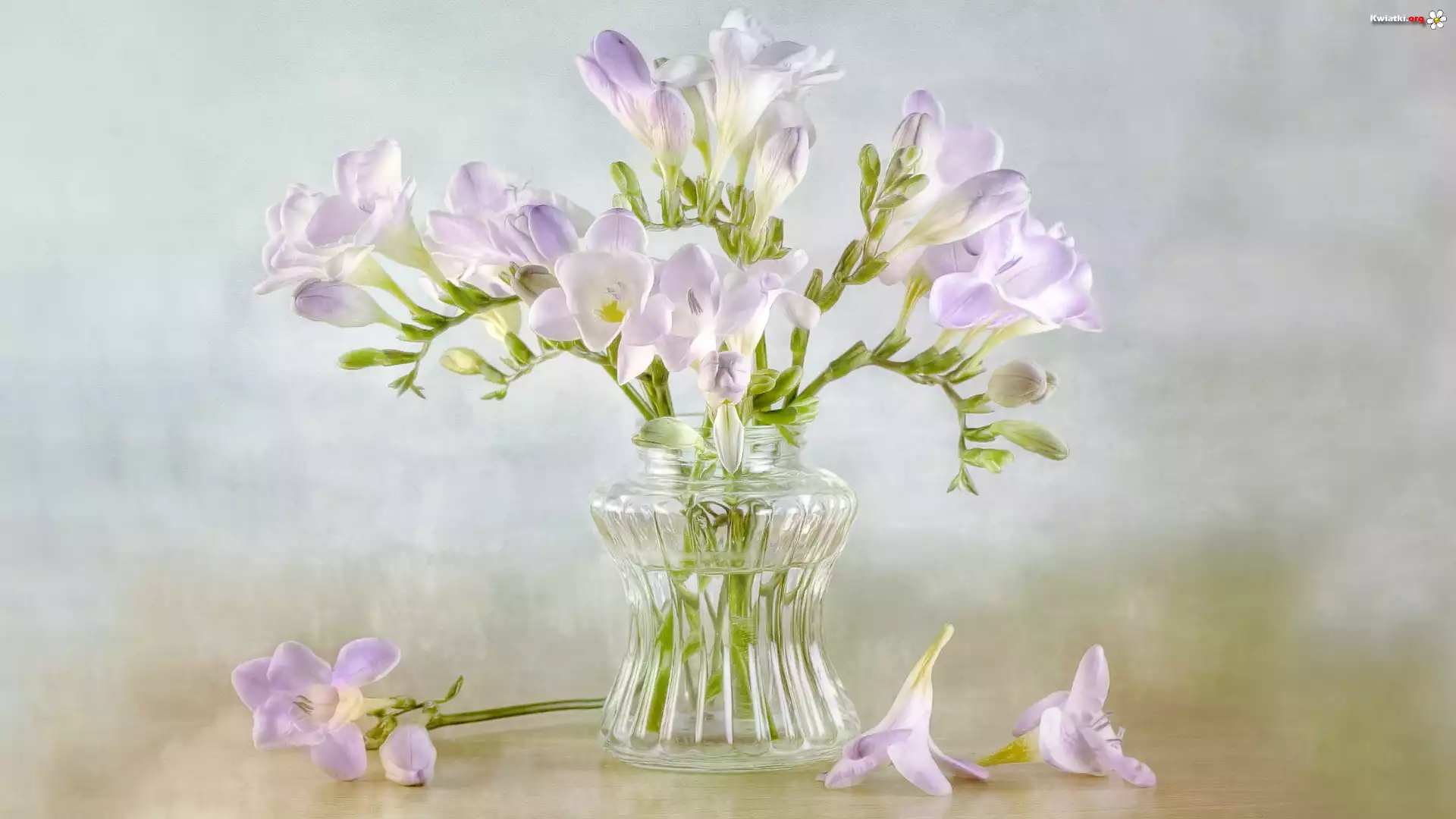 Kwiat Jasnofioletowe, Frezje, Szklany, Wazonik