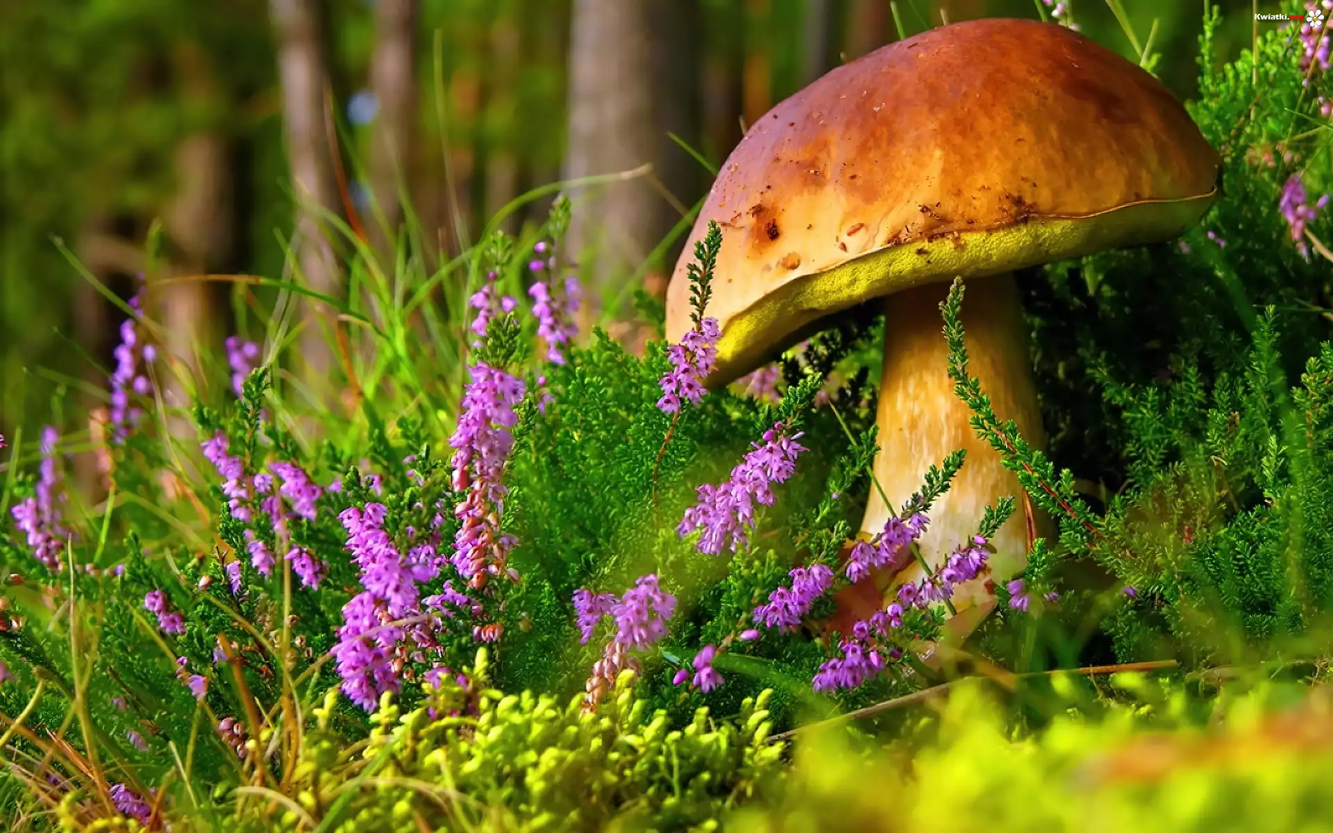 Kwiat Jesień, Grzyb, Prawdziwek, Wrzos, Trawa