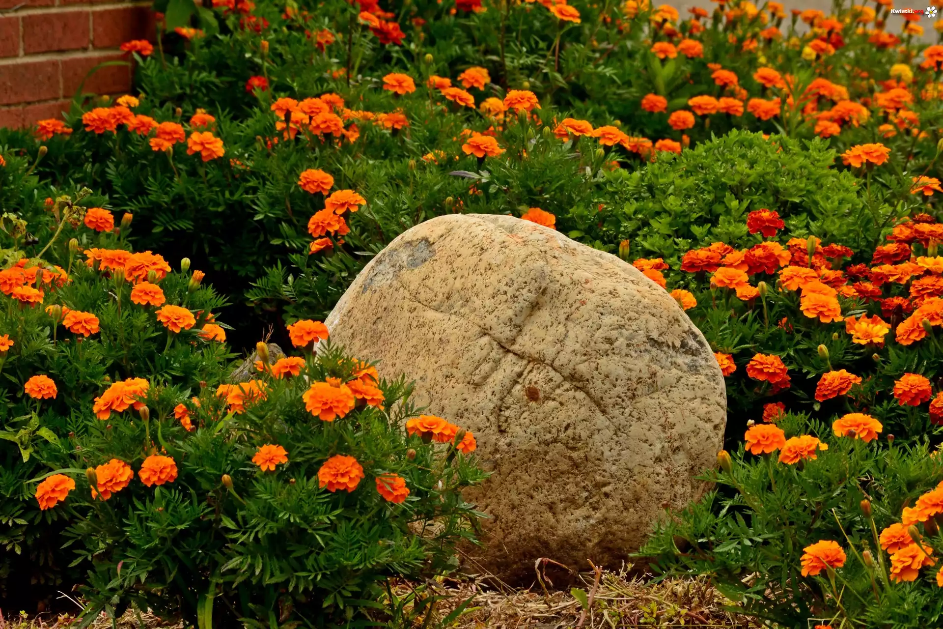 Ogród, Kamień, Aksamitki - Zdjęcia