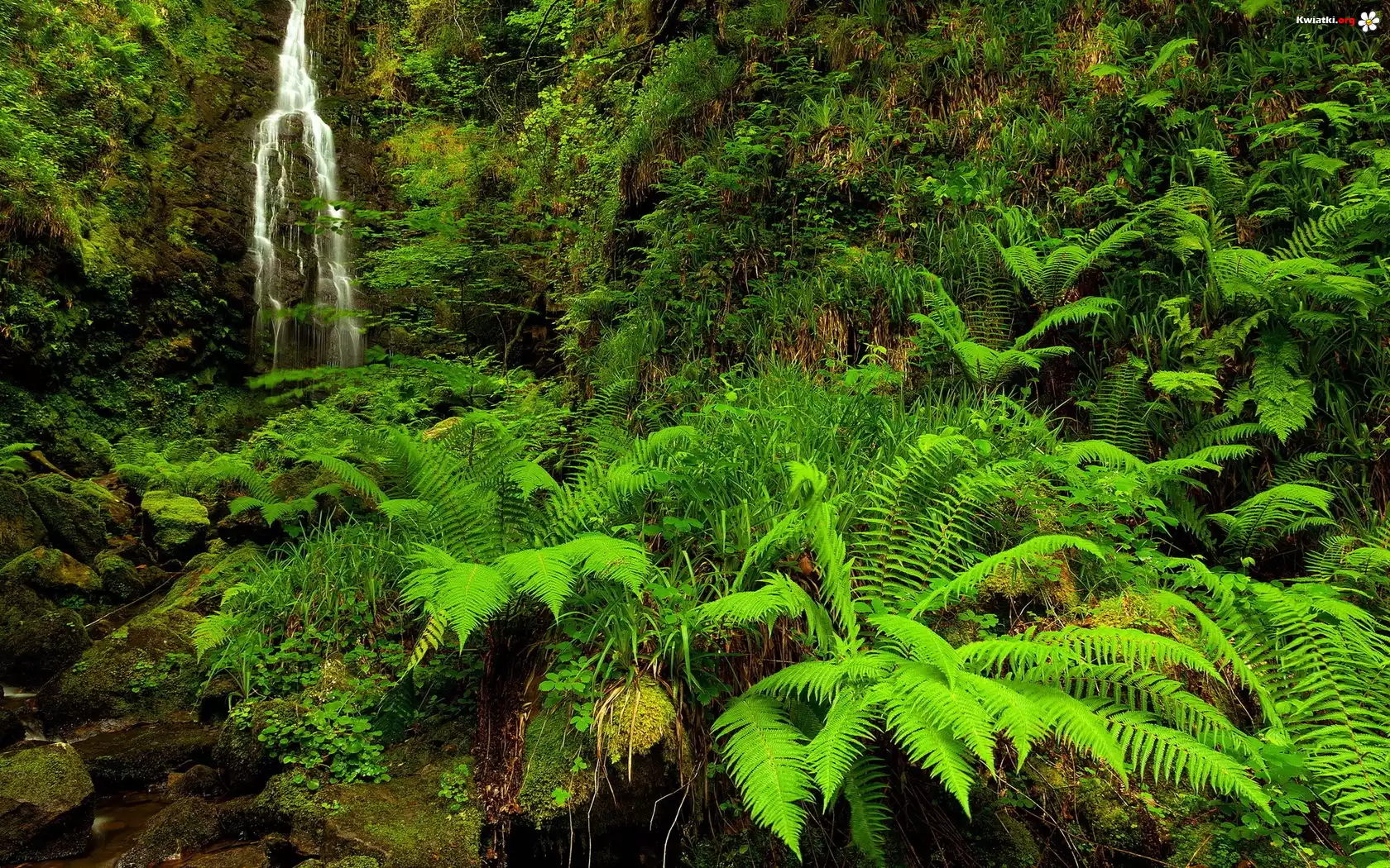 Paprocie, Kamienie, Wodospad - Zdjęcia