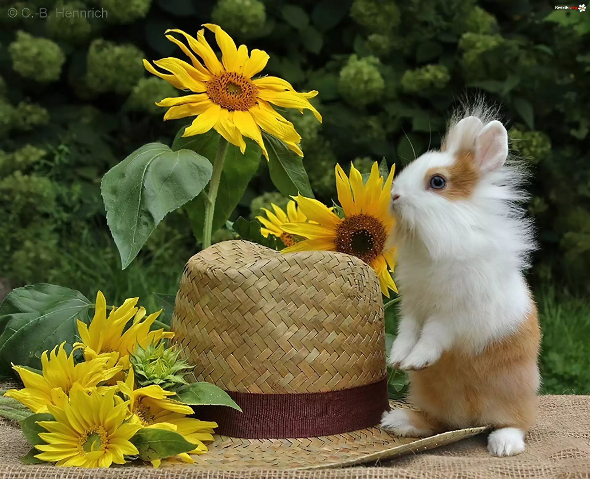 Króliczek, Kapelusz, Słoneczniki - Zdjęcia
