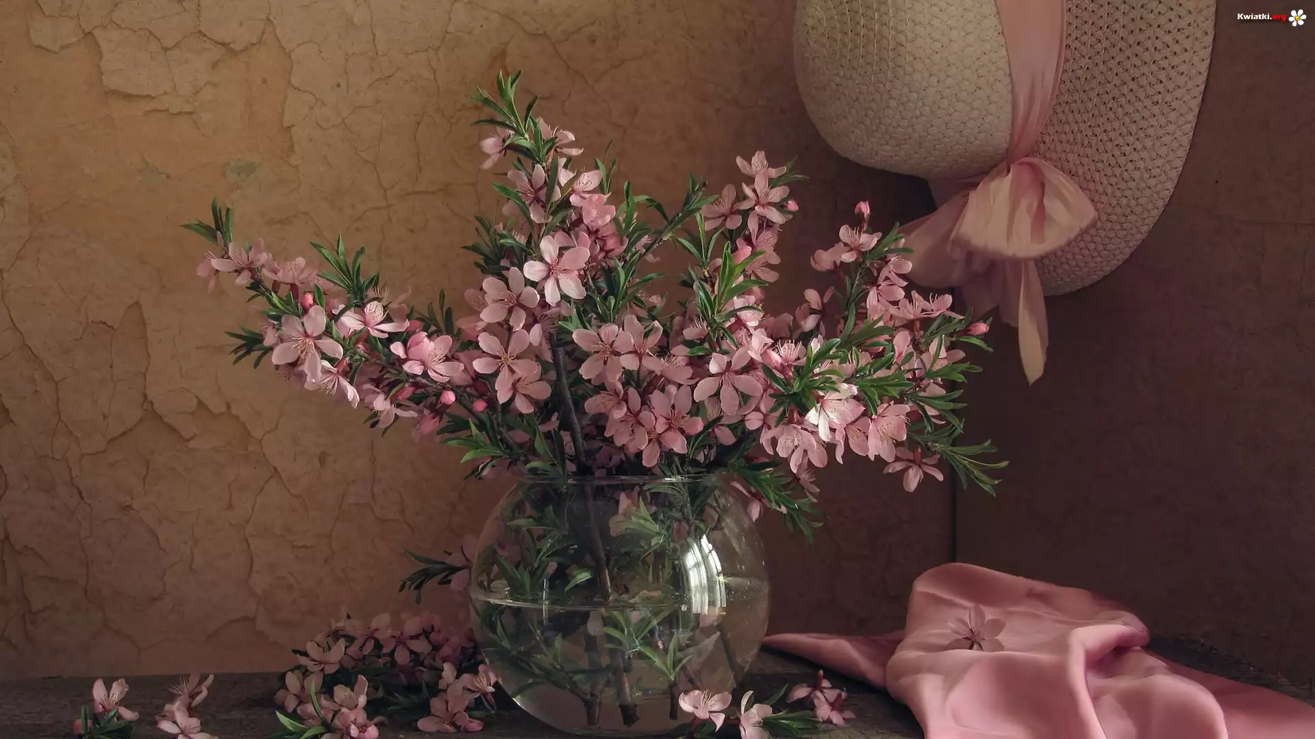 Kapelusz, Wazon, Różowe, Kwiatuszki - Zdjęcia
