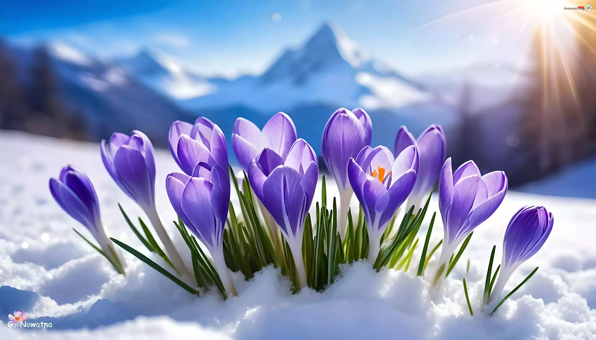 Fioletowe, Krokusy, Kwiaty, Kępka, Śnieg, Grafika - Zdjęcia