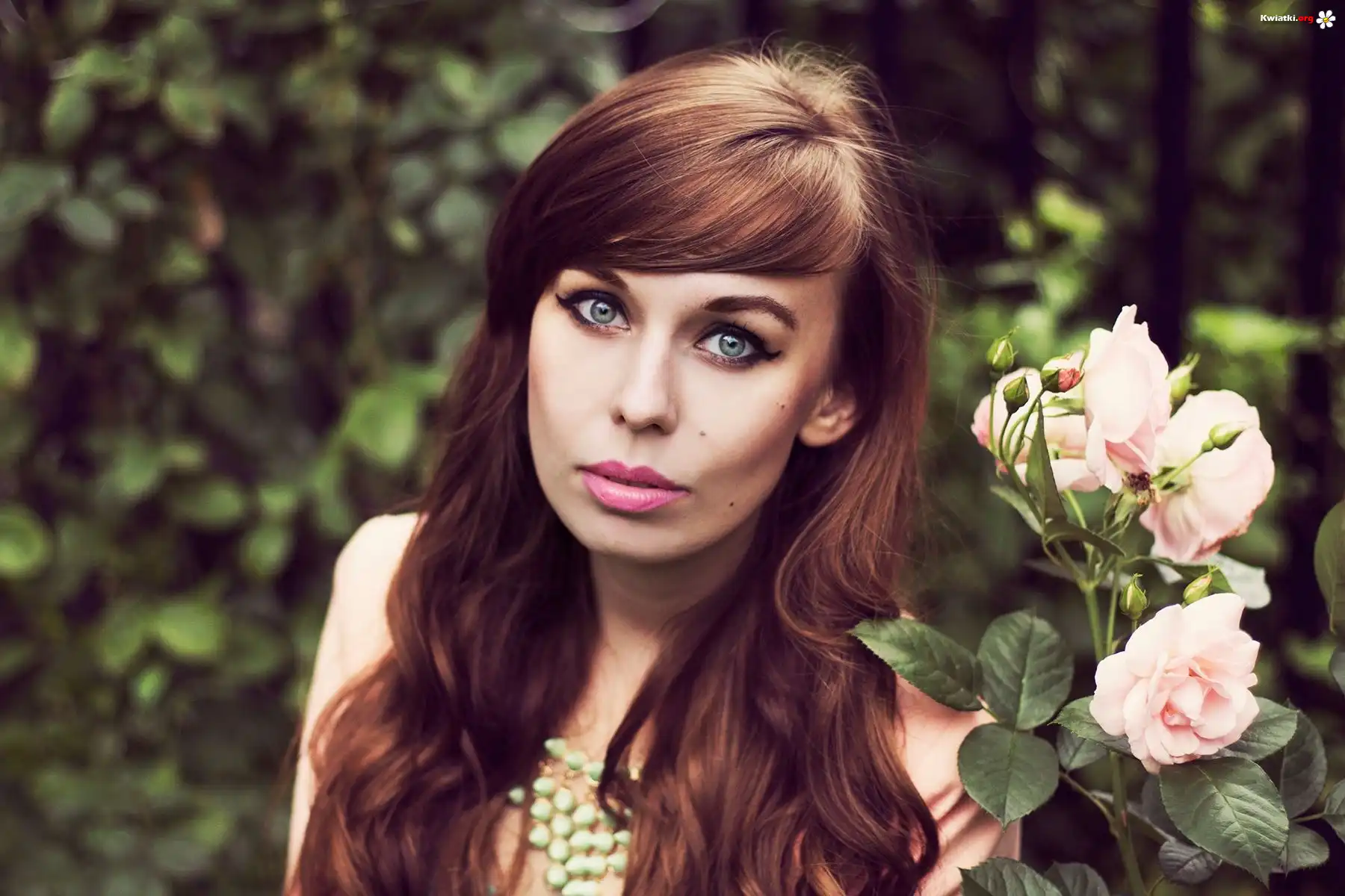 Kobieta, Szatynka, Różowe, Róże - Zdjęcia