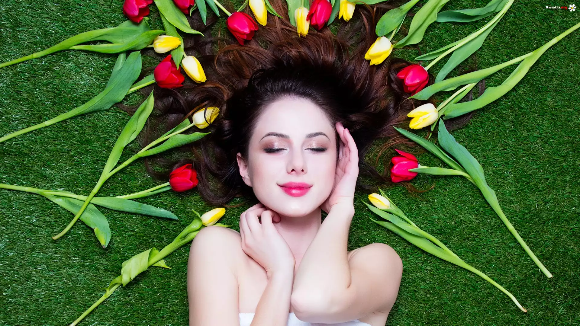 Kwiat Uśmiechnięta, Kobieta, Tulipany