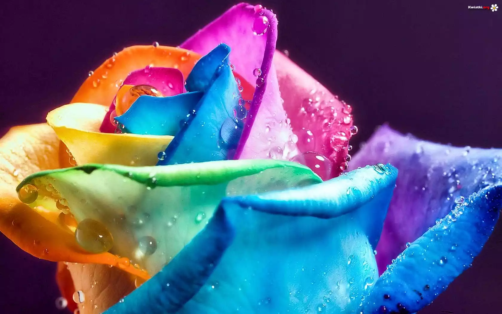 Kolorowa, Róża, Krople, Wody - Zdjęcia