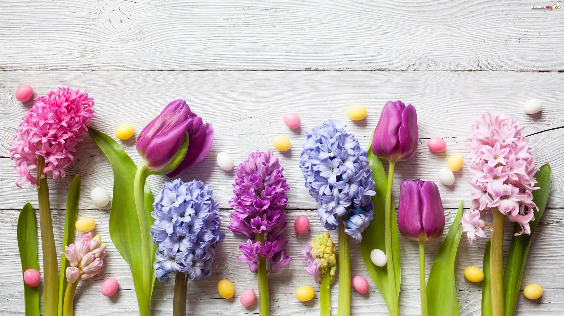Kwiat Kwiaty, Hiacynty, Tulipany, Kolorowe, Cukierki, Deski
