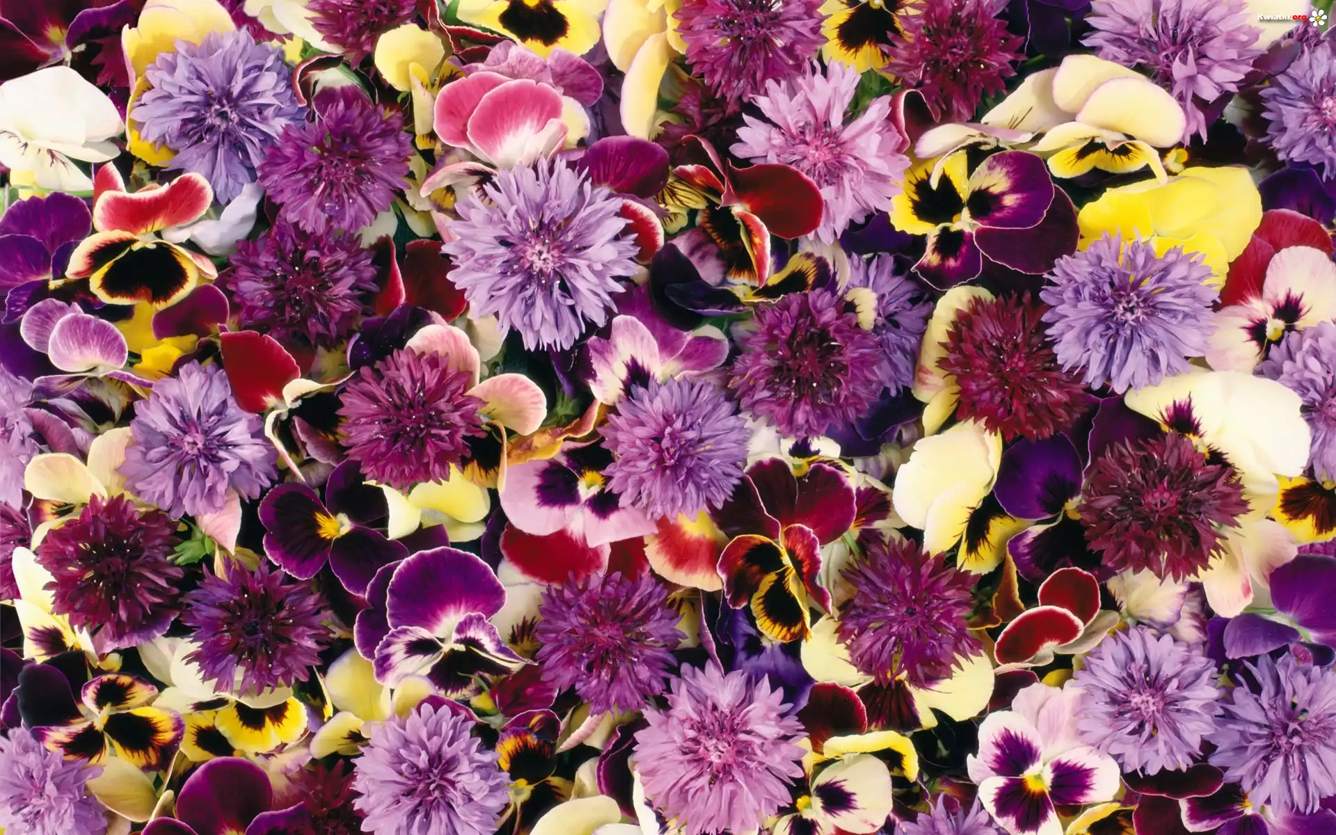 Kolorowe, Kwiaty, Bratki, Chabry - Zdjęcia