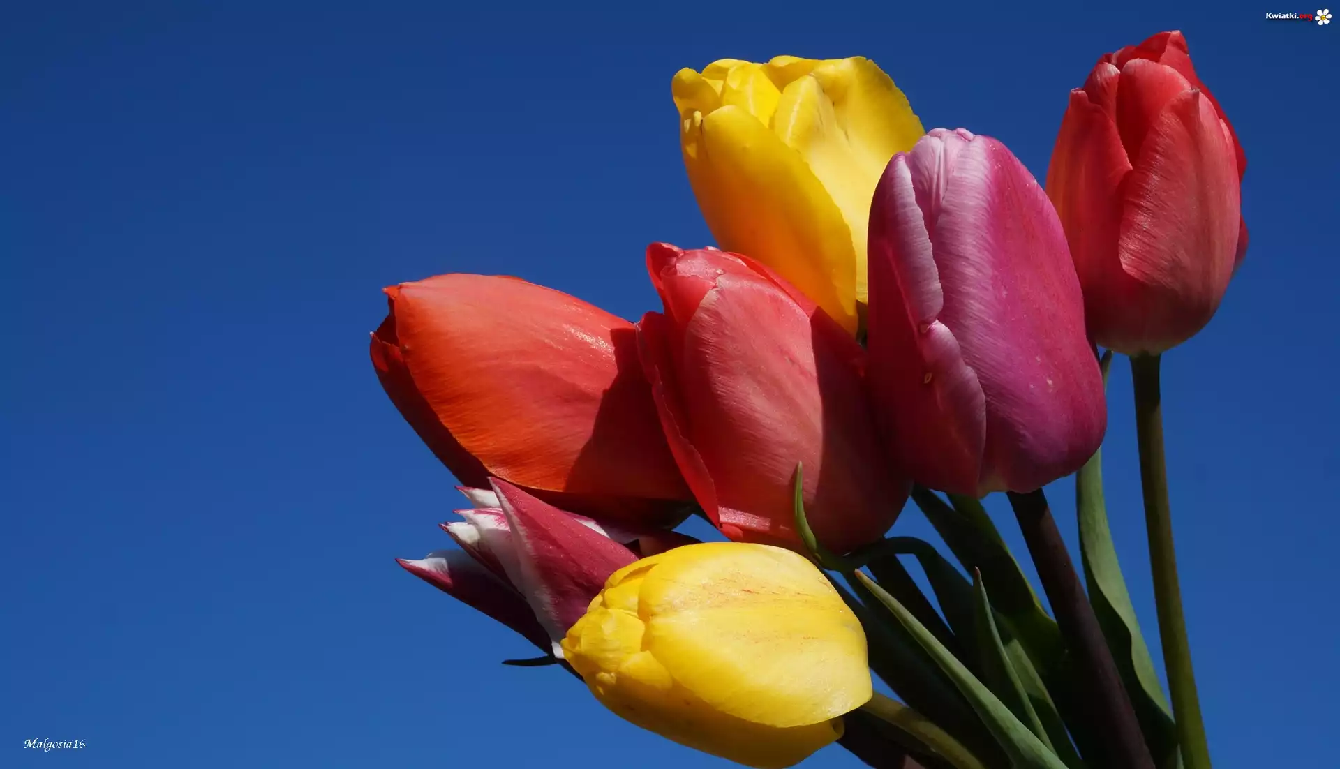 Kwiat Kolorowe, Tulipany, Bukiet, Niebo