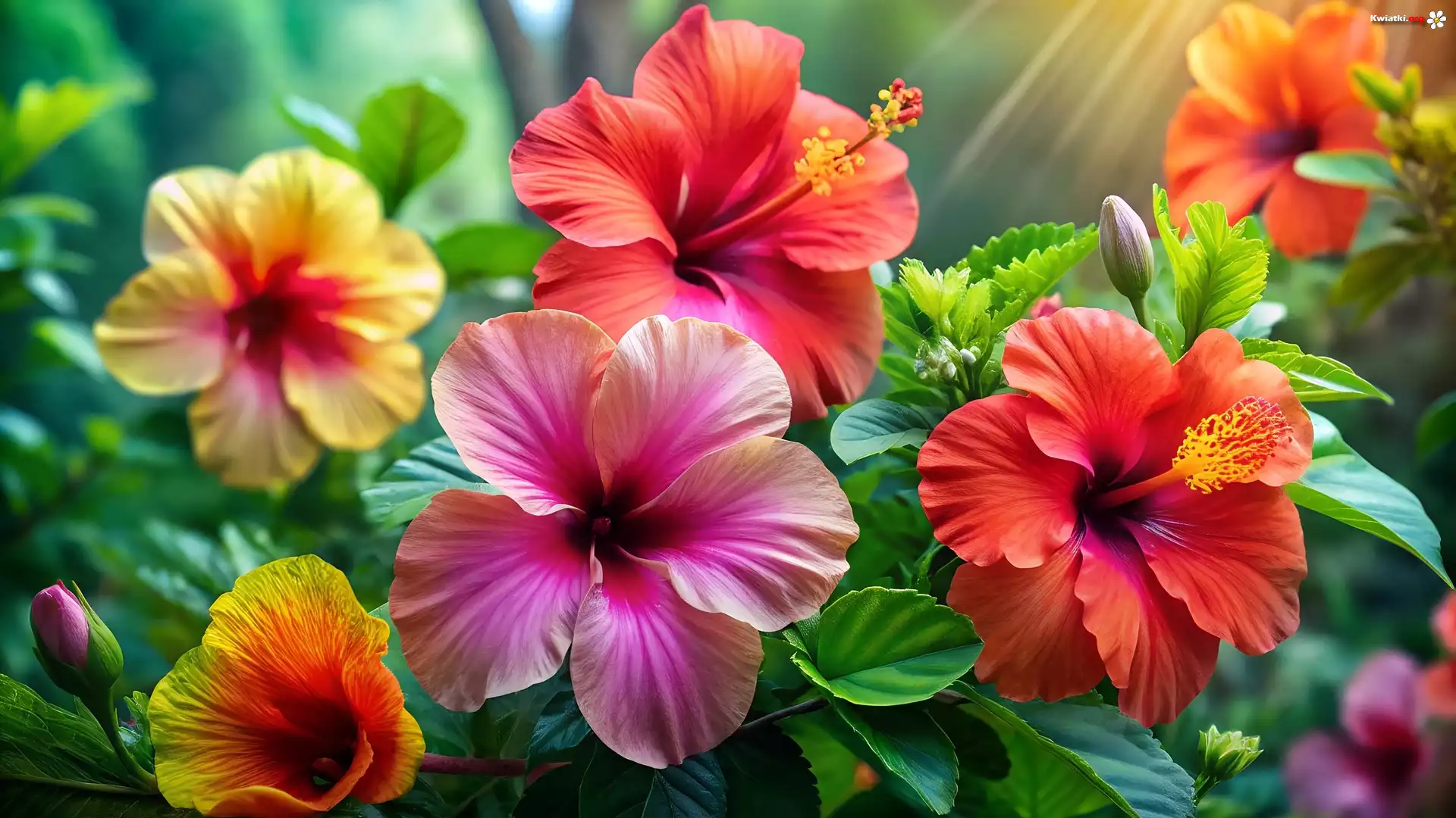 Kolorowe, Kwiaty, Hibiskusy - Zdjęcia